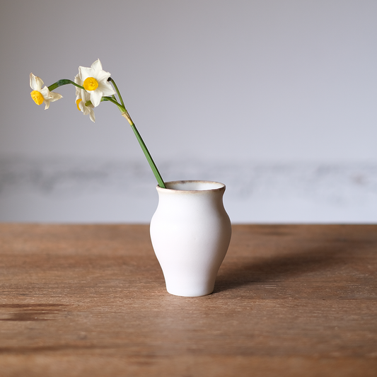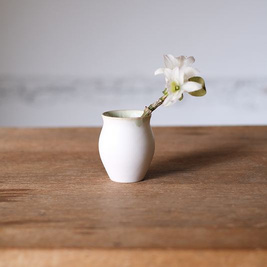 大理石のような風合いのものや、砂っぽくザラザラとした風合いのもの、ぽってりとしたもの等々、一点一点の形・模様・質感が異なる唯一無二の作品を製作されています。生花はもちろんのこと、ドライフラワーやちょっとした小枝などを生けても、雰囲気が出ておすすめです。いくつかそろえて置いておきたくなるうつわです。