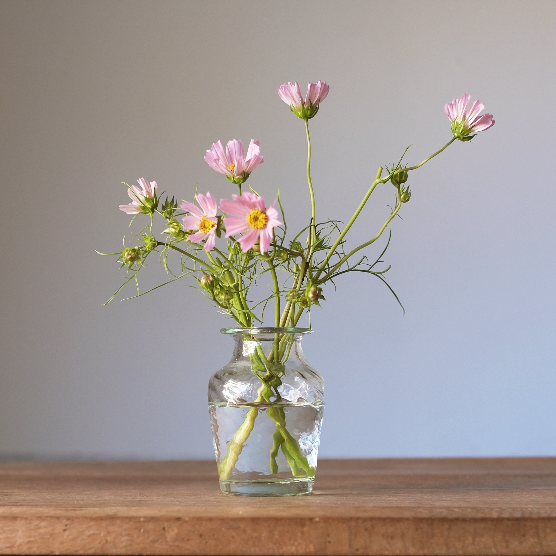 窓辺や棚に置けば、日差しをうけてやわらかに光を返してくれ、いつもの暮らしの中で、季節の移ろいをそっと感じられる花瓶です。