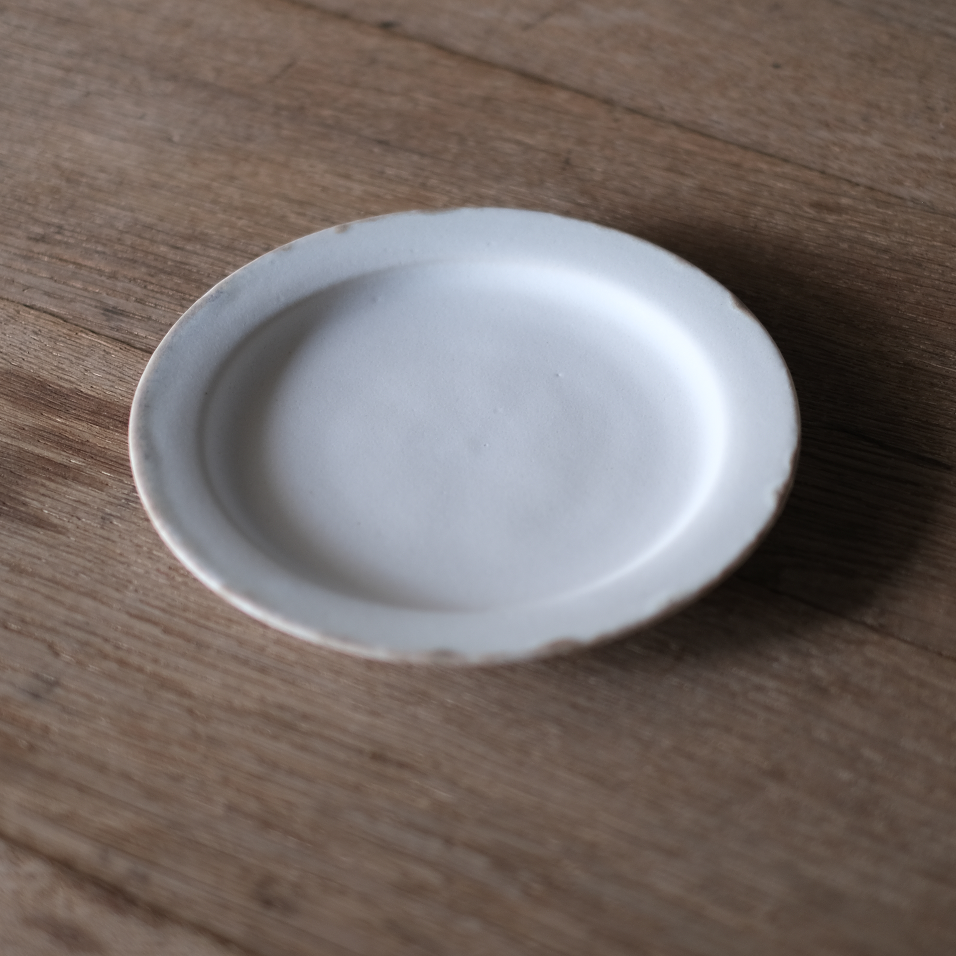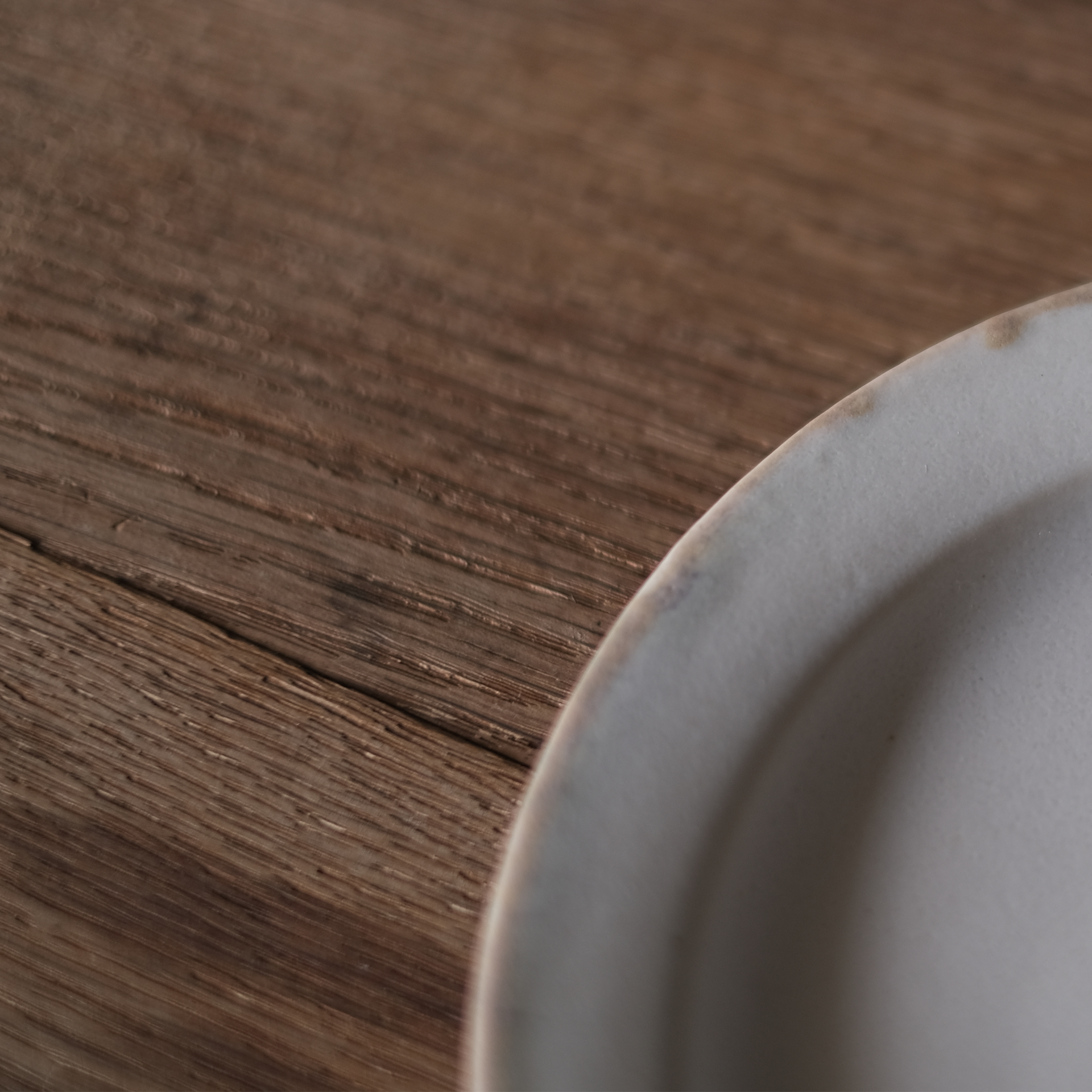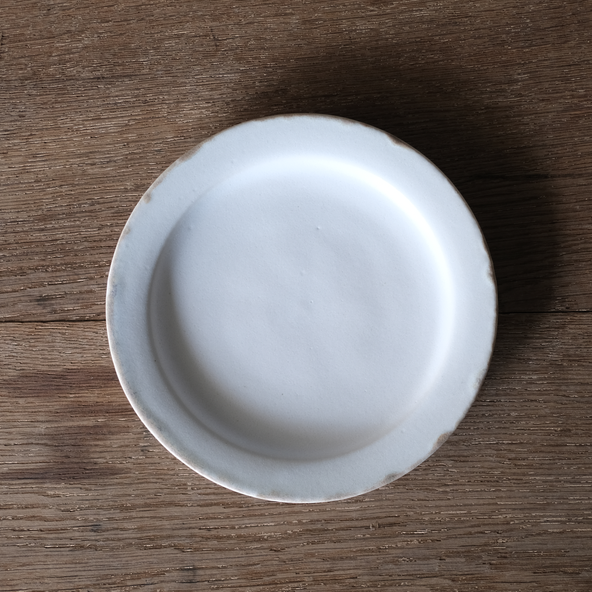 縁にかけて広がる淡いブラウンの釉薬が特徴のリムプレート。