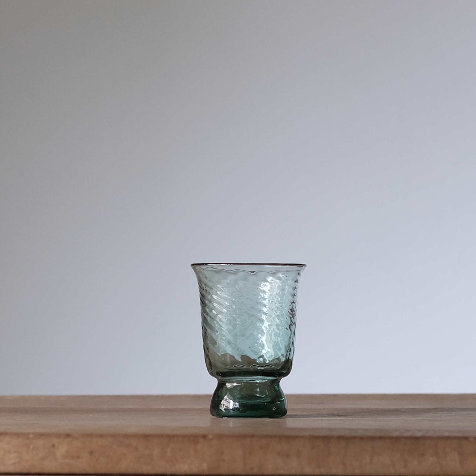 装飾的な美しさではなく、普段の暮らしの中で気軽に使える、用の美を追求している平岩さんのガラスは、持ち易く、手にすっと馴染みます。そして再生ガラスのもつ柔らかな輝きと、少し厚みがあるのが特徴です。