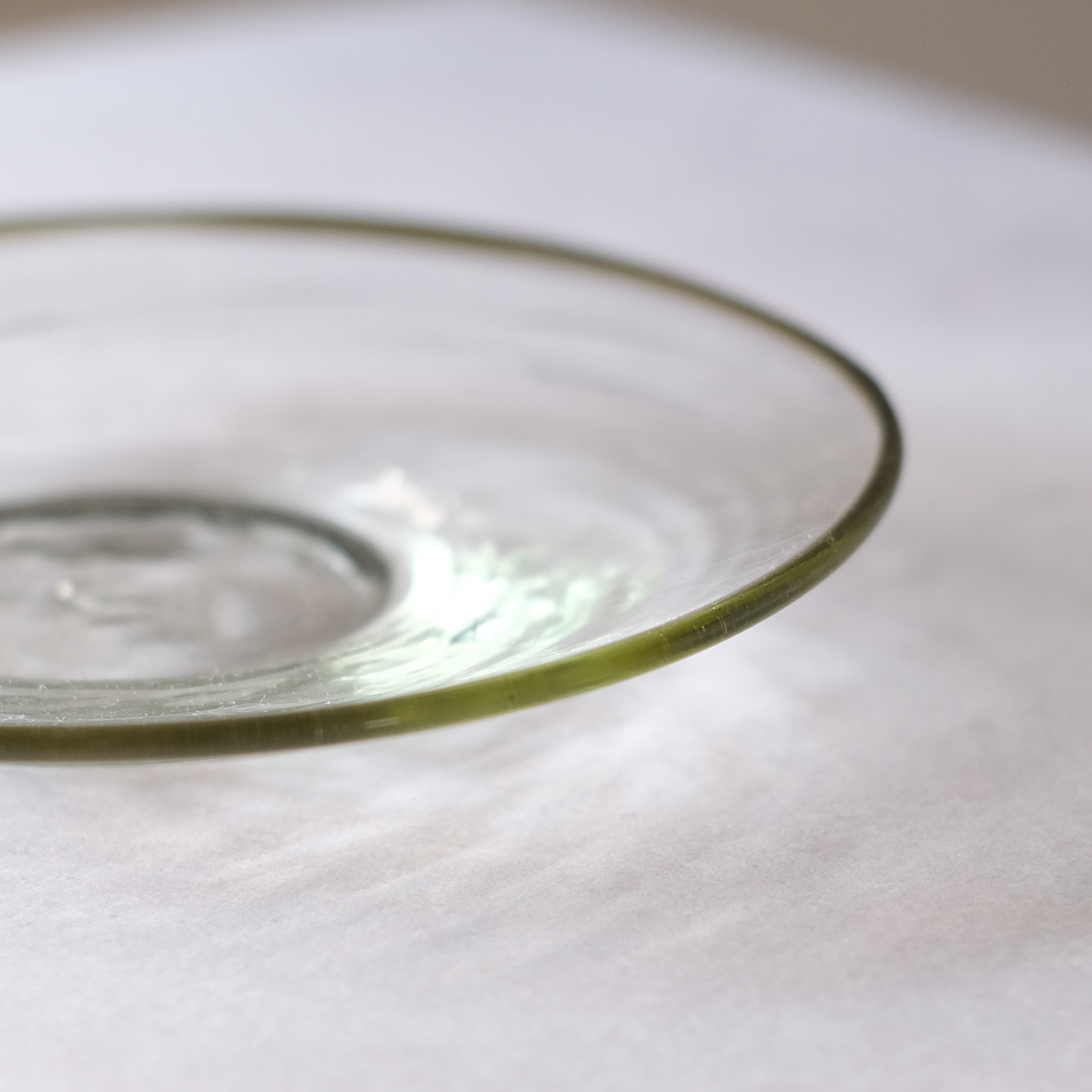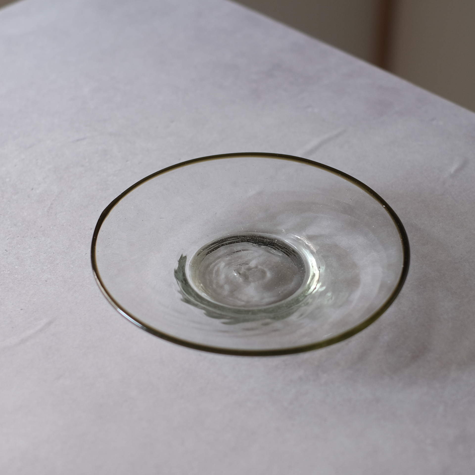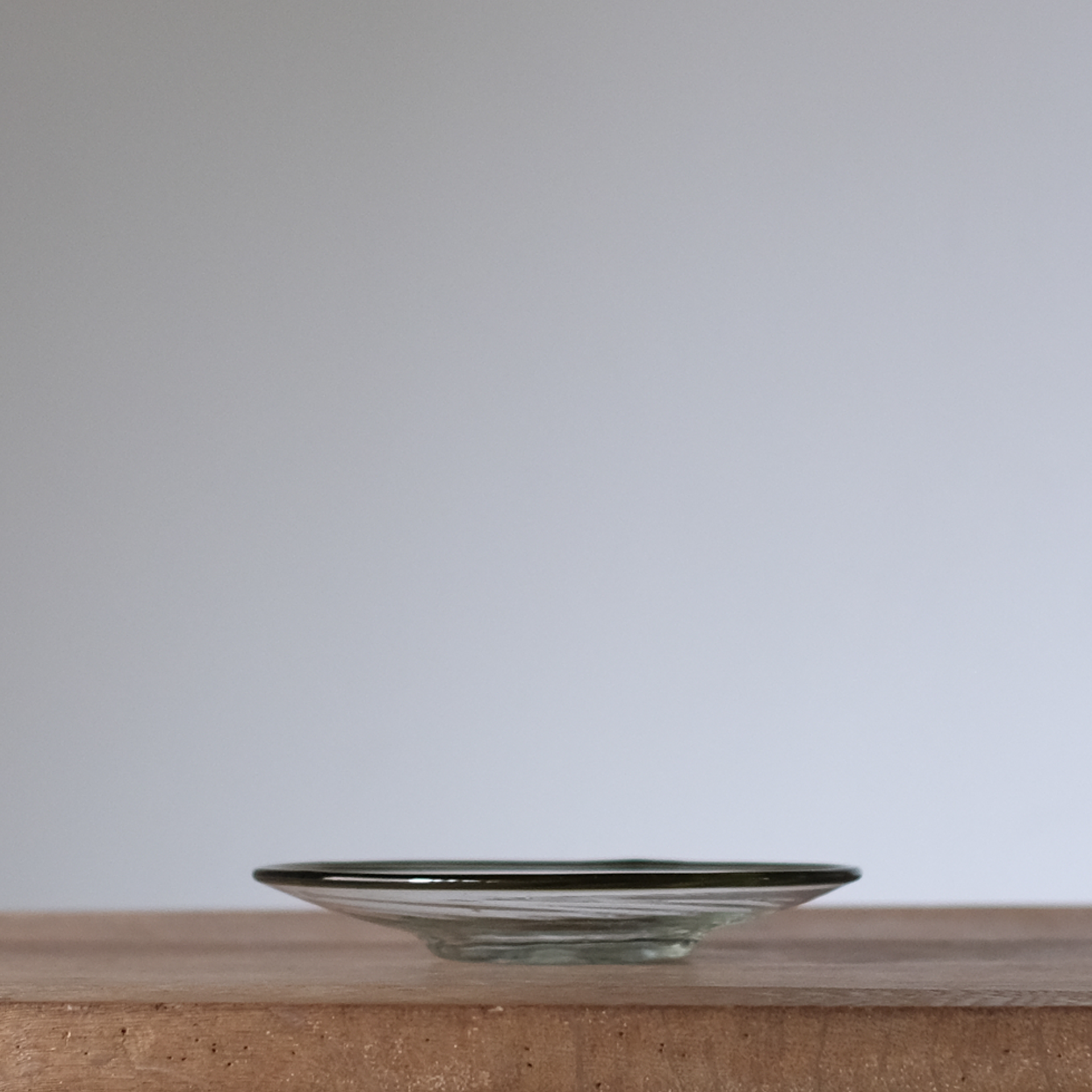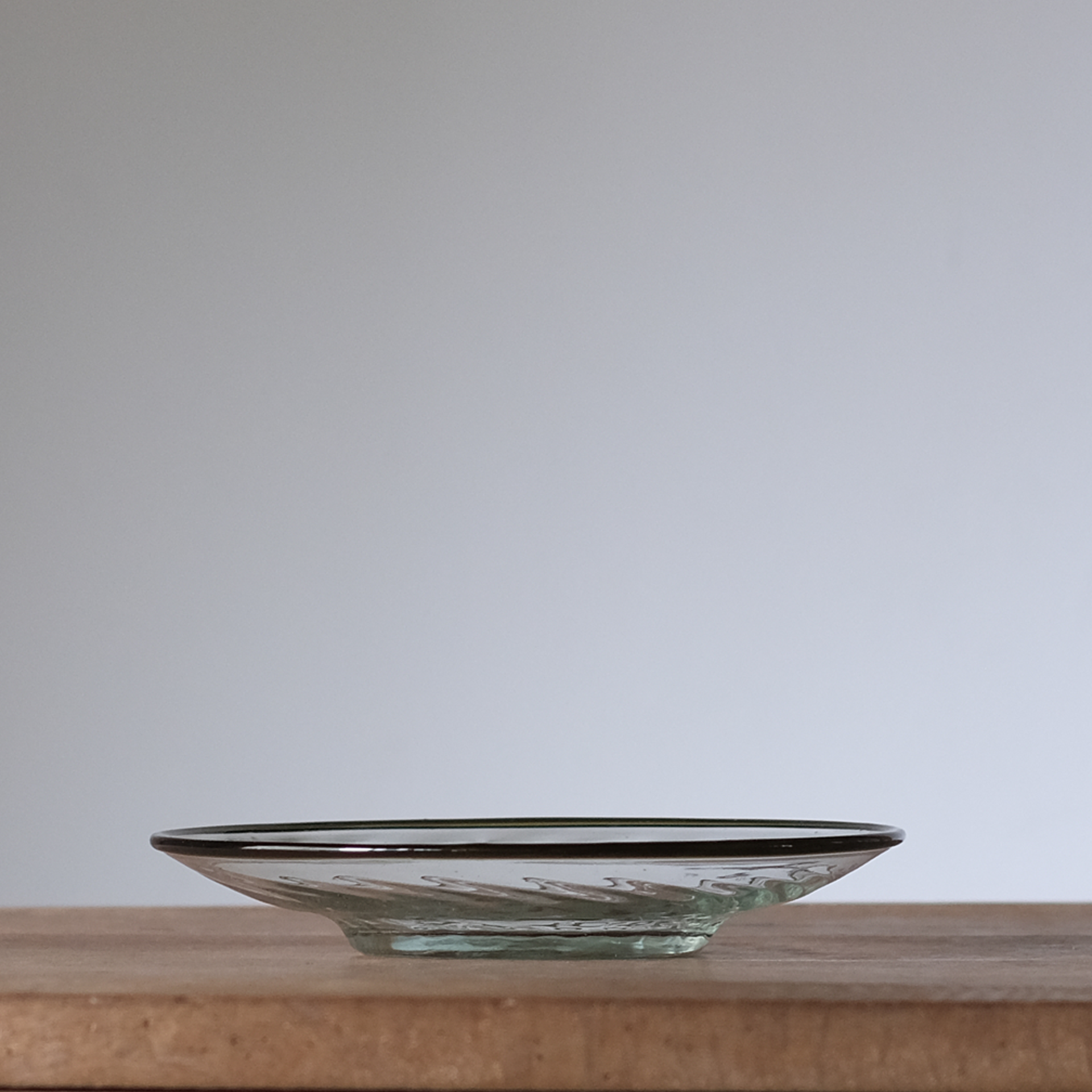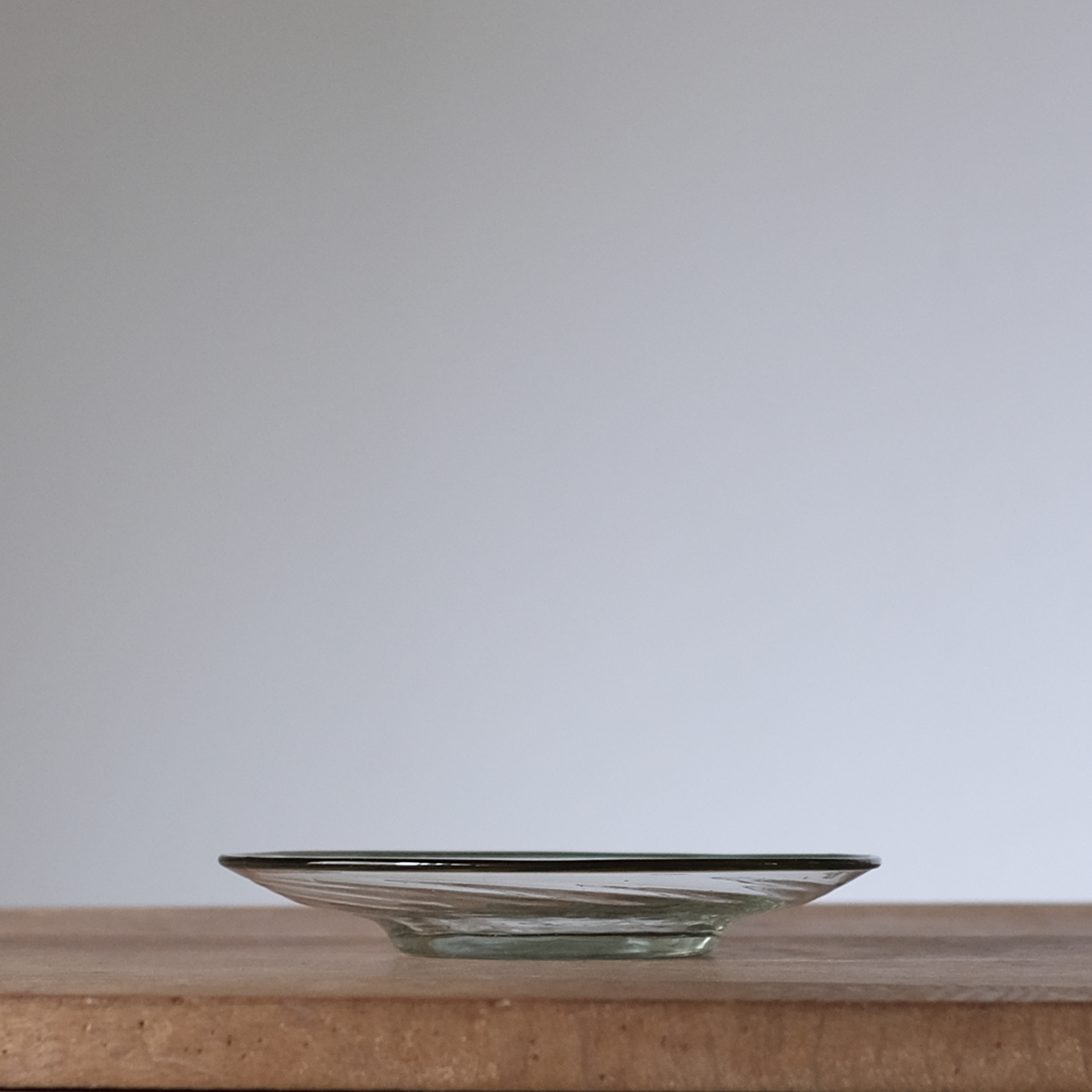 シンプルでどんなテーブルコーディネートにも合うガラスのお皿です。