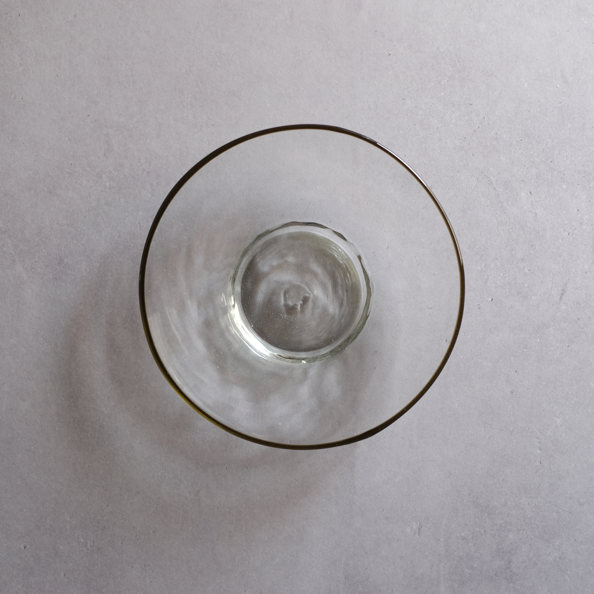 装飾的な美しさではなく、普段の暮らしの中で気軽に使える、用の美を追求している平岩さんのガラスは、持ち易く、手にすっと馴染みます。そして再生ガラスのもつ柔らかな輝きと、少し厚みがあるのが特徴です。