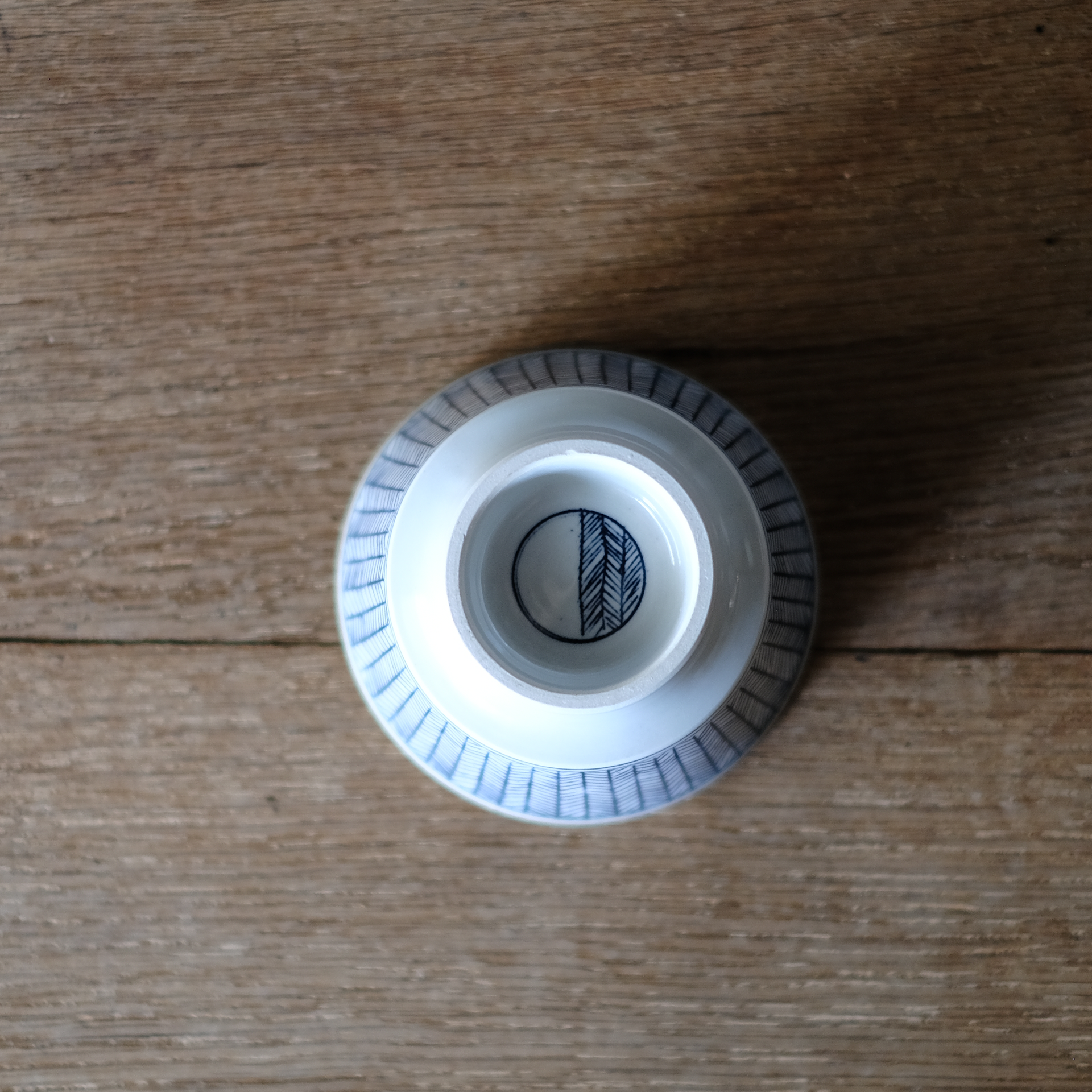 側面に描かれた象嵌の技法を用いた手書きの模様が、ご飯の時間を楽しくしてくれるうつわです。