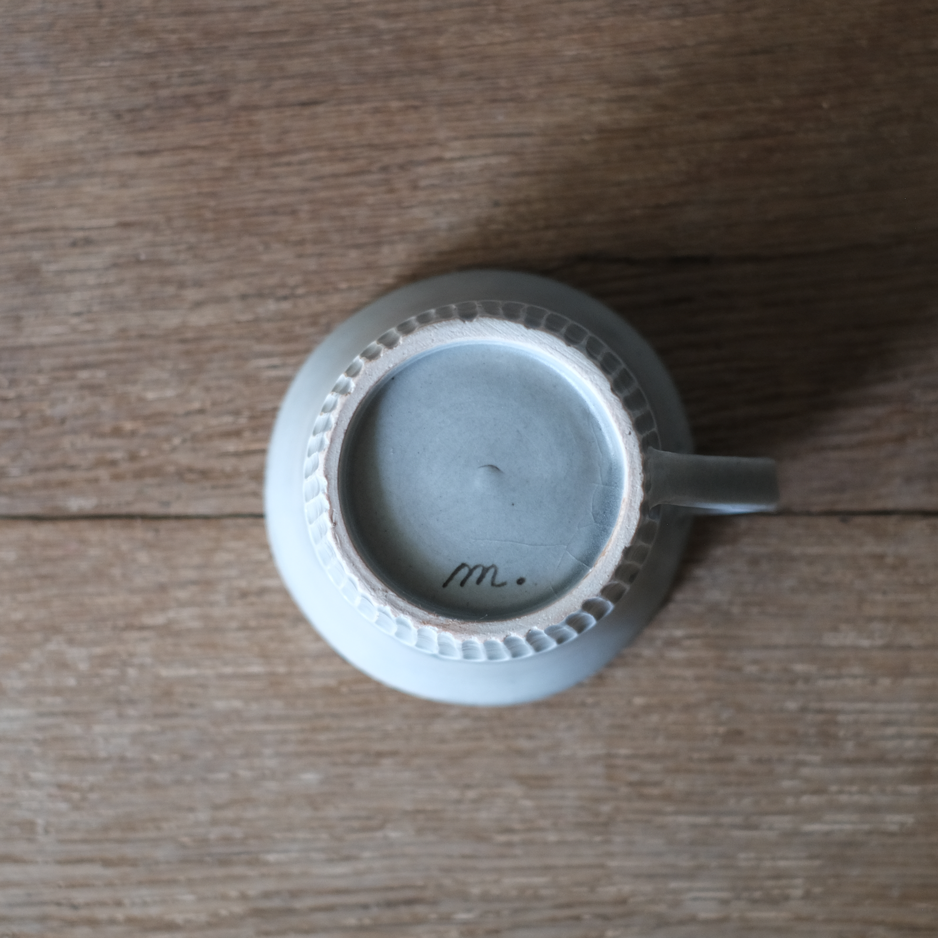 カップの底には石渡磨美さんの「m.」のサインが入っています。