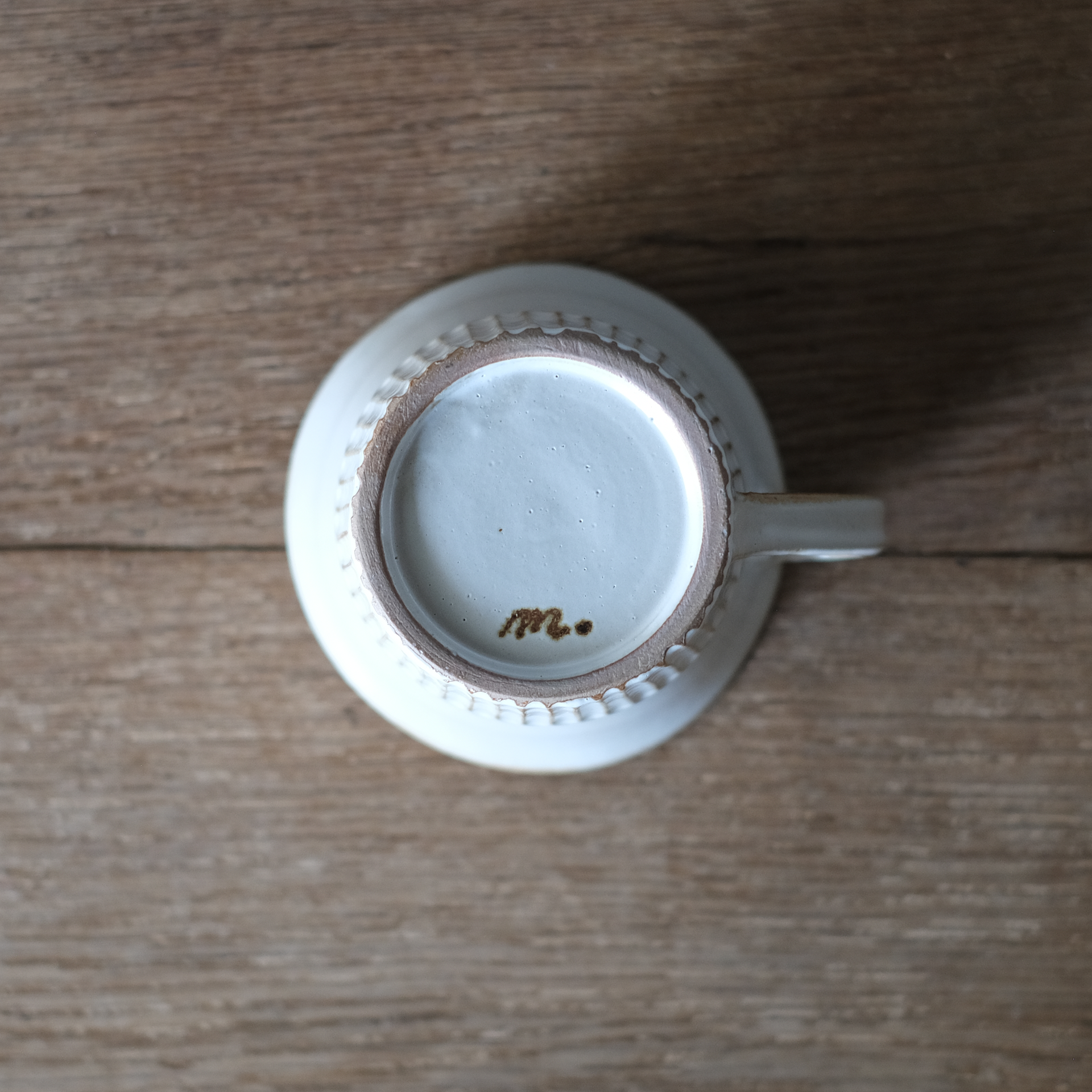 カップの底には石渡磨美さんの「m.」のサインが入っています。