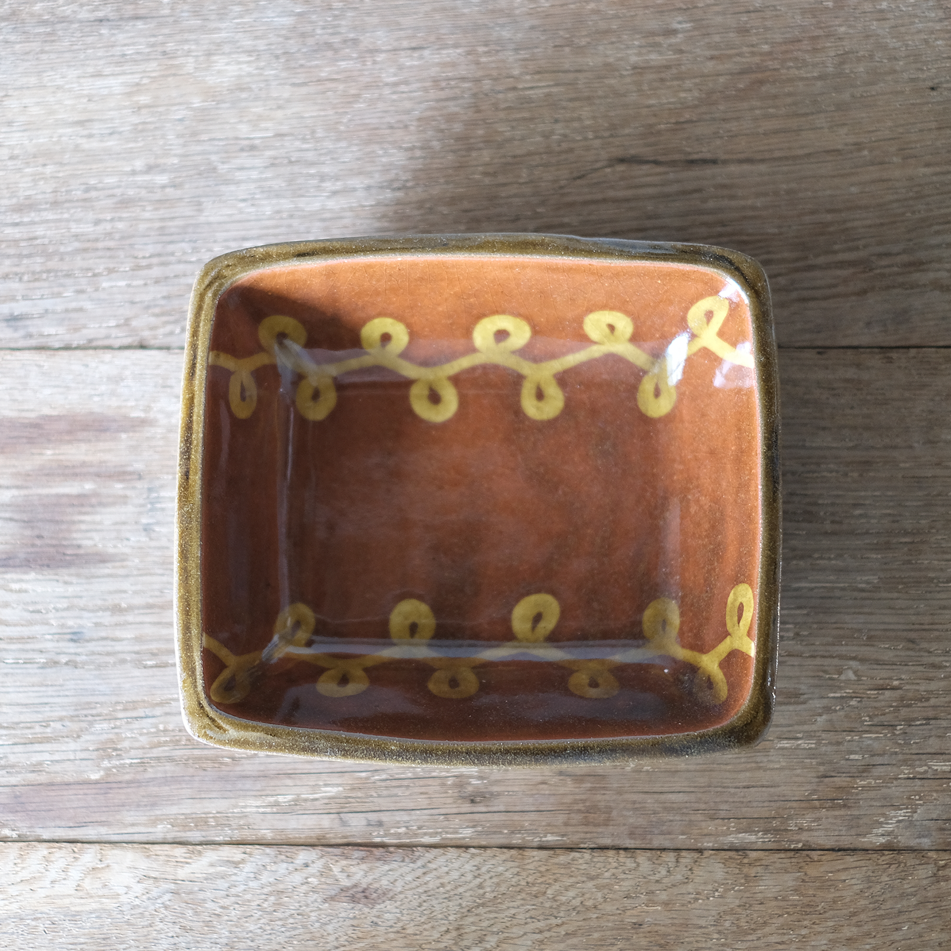 ぽってりとした色合いと少しムチッとした線で表現される今津さんのスリップウェアの器。柔らかく温かみのある風合いの器です。