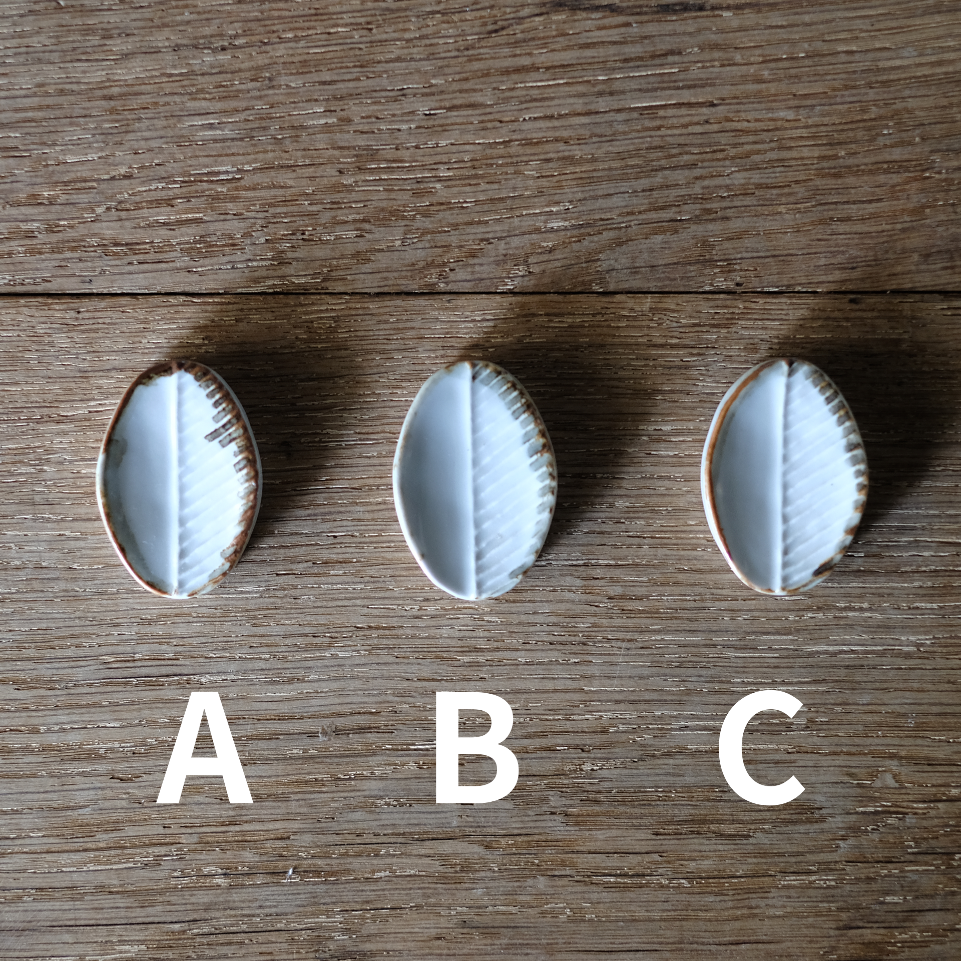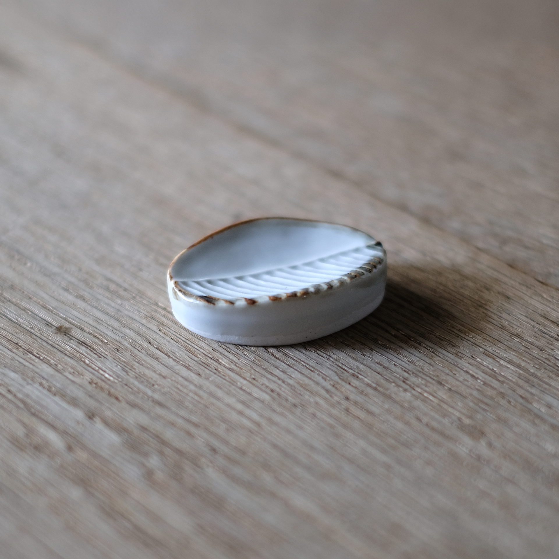 小さな箸置きですが、お皿やカップと同様に、彫った線に呉須をすり込んで表現された象嵌という技法を用いた模様は、手間を惜しまぬ仕事の積み重ねから生まれたもの。