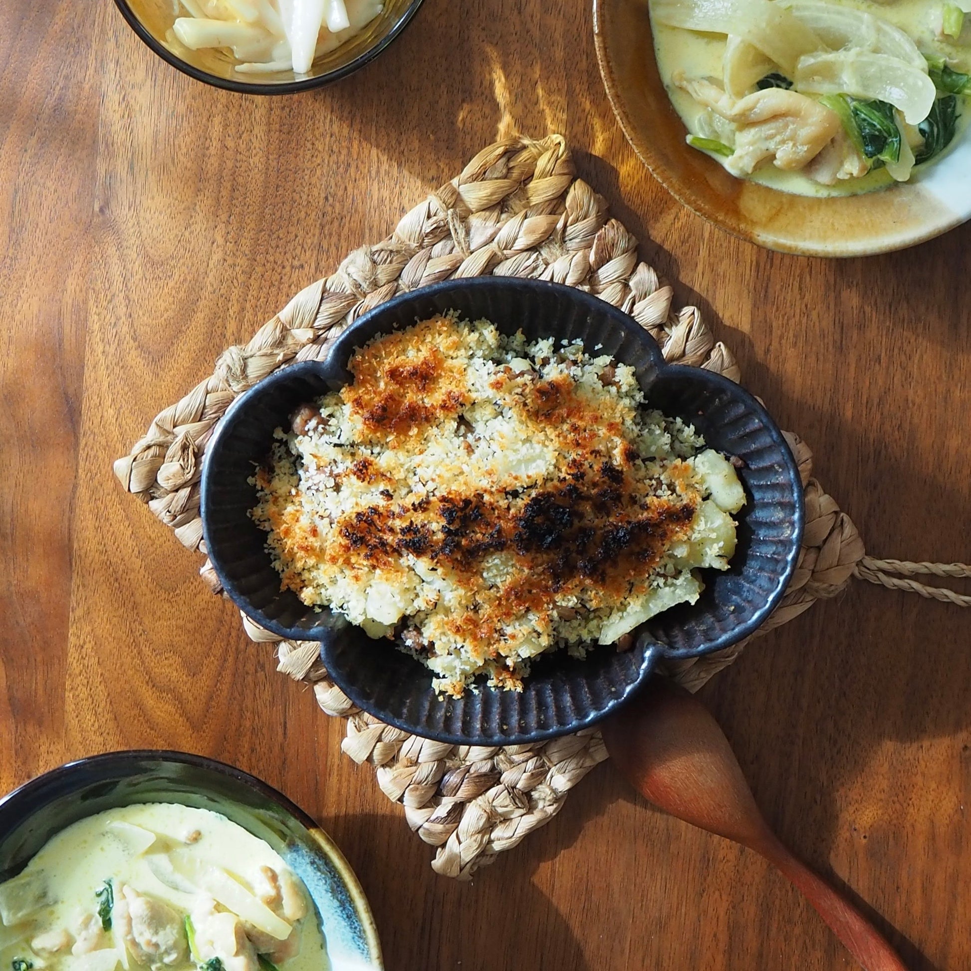 オーブンやトースター、魚焼きグリルも使える器なので、グラタンやドリアのほか、グリル料理などはもちろん、パイやパンプディングなどのお菓子作りにもおすすめです。