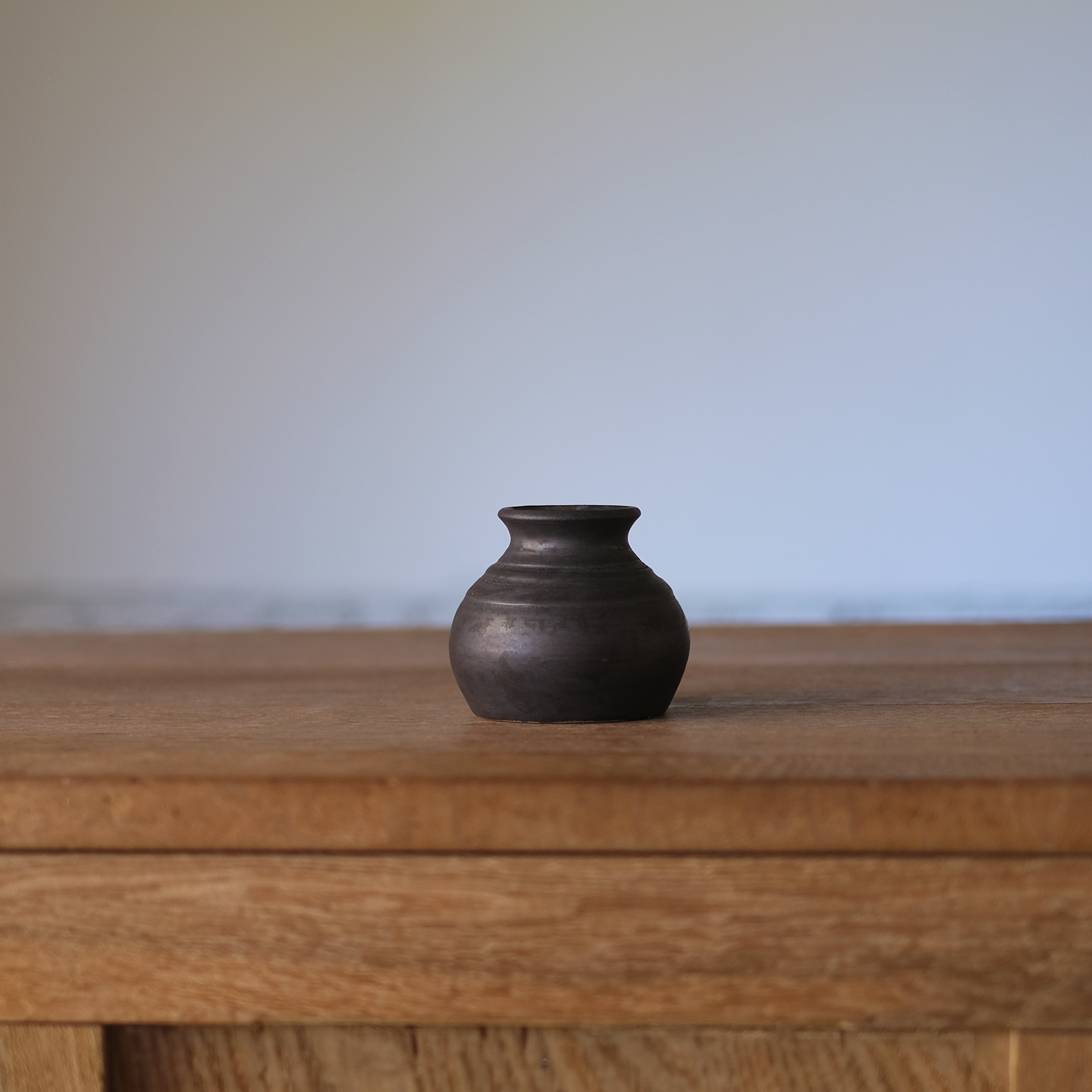 ふっくらと丸みを帯びた胴と、ゆるやかに締まった口の一輪挿し。