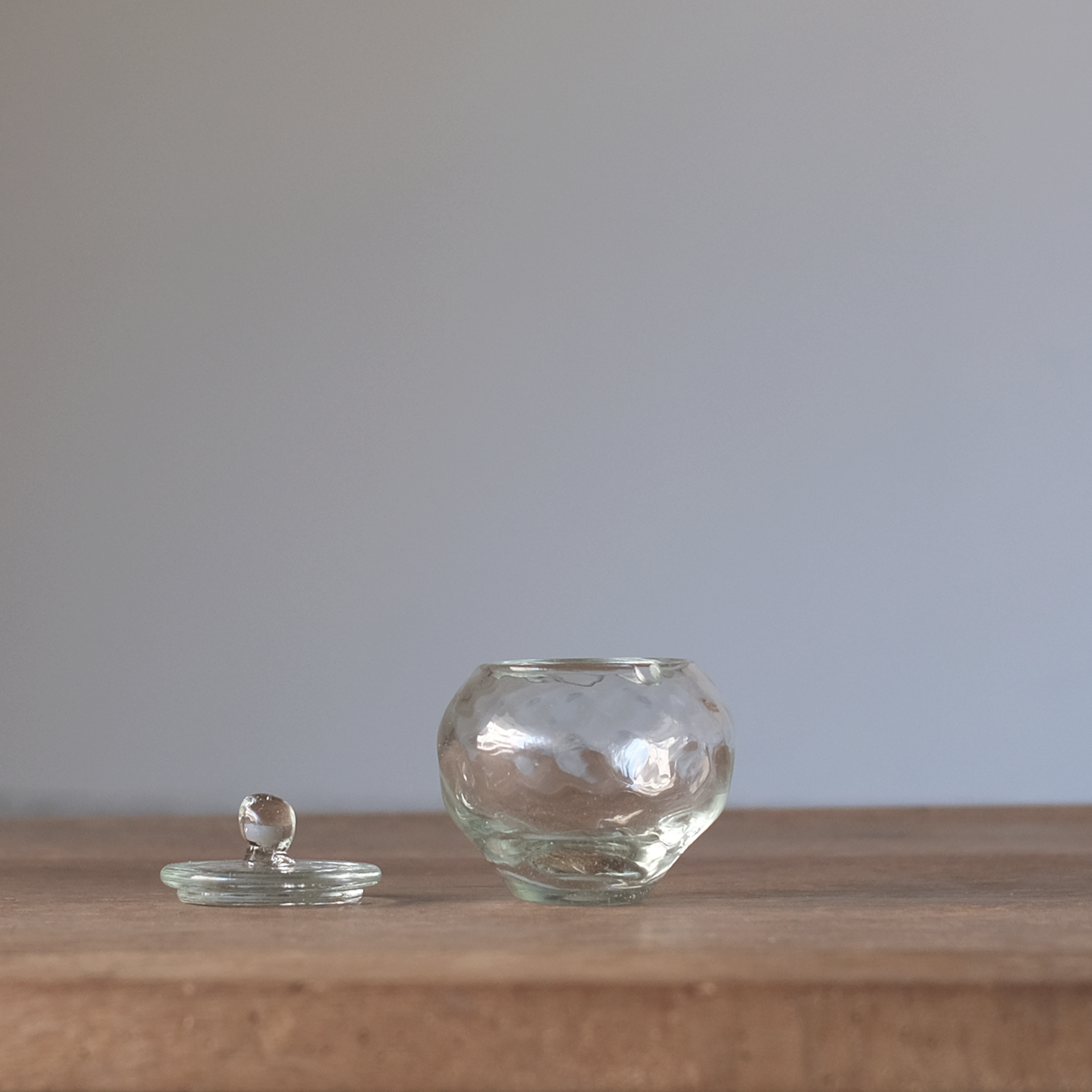 再生ガラスならではの、ぽてっとした厚みと質感が魅力。