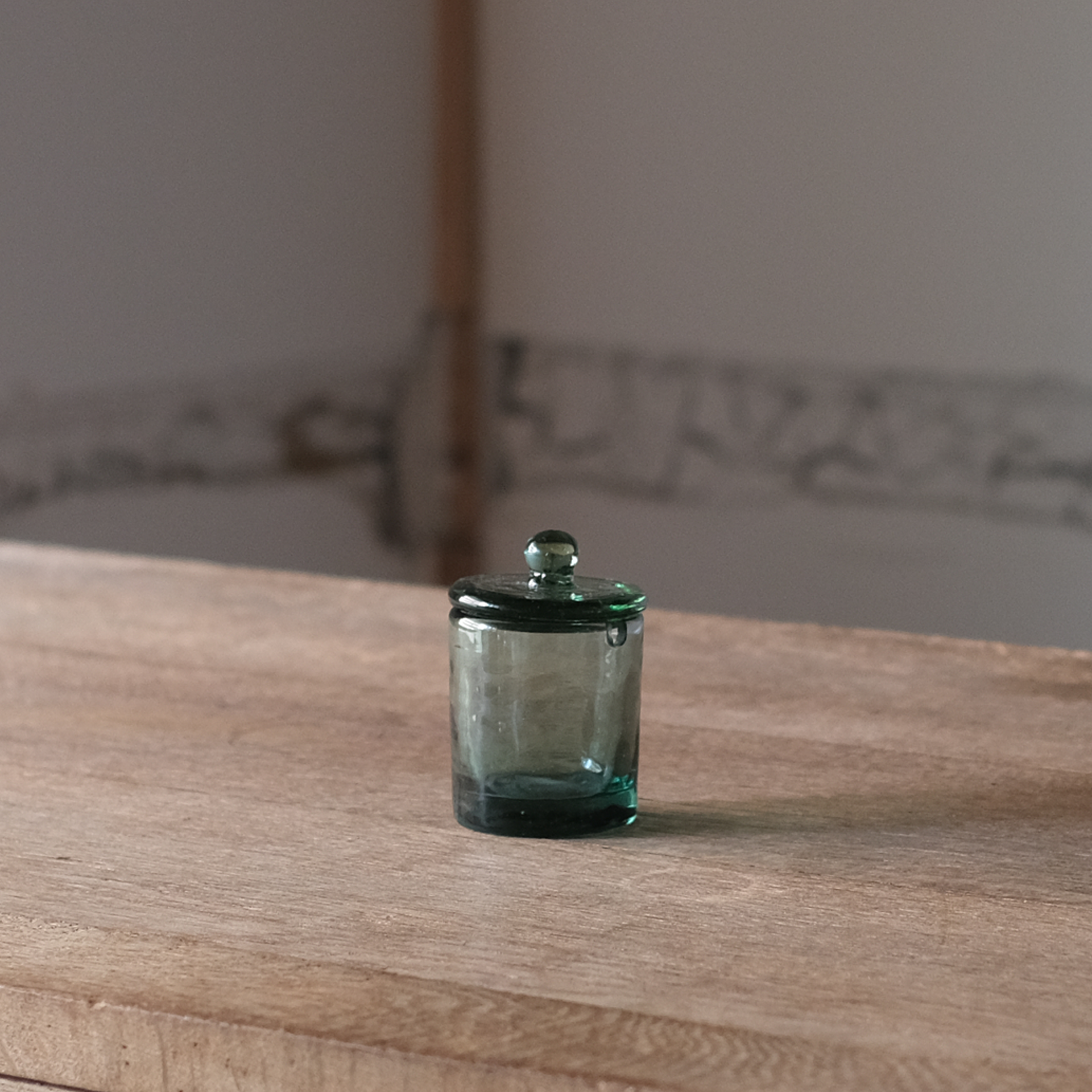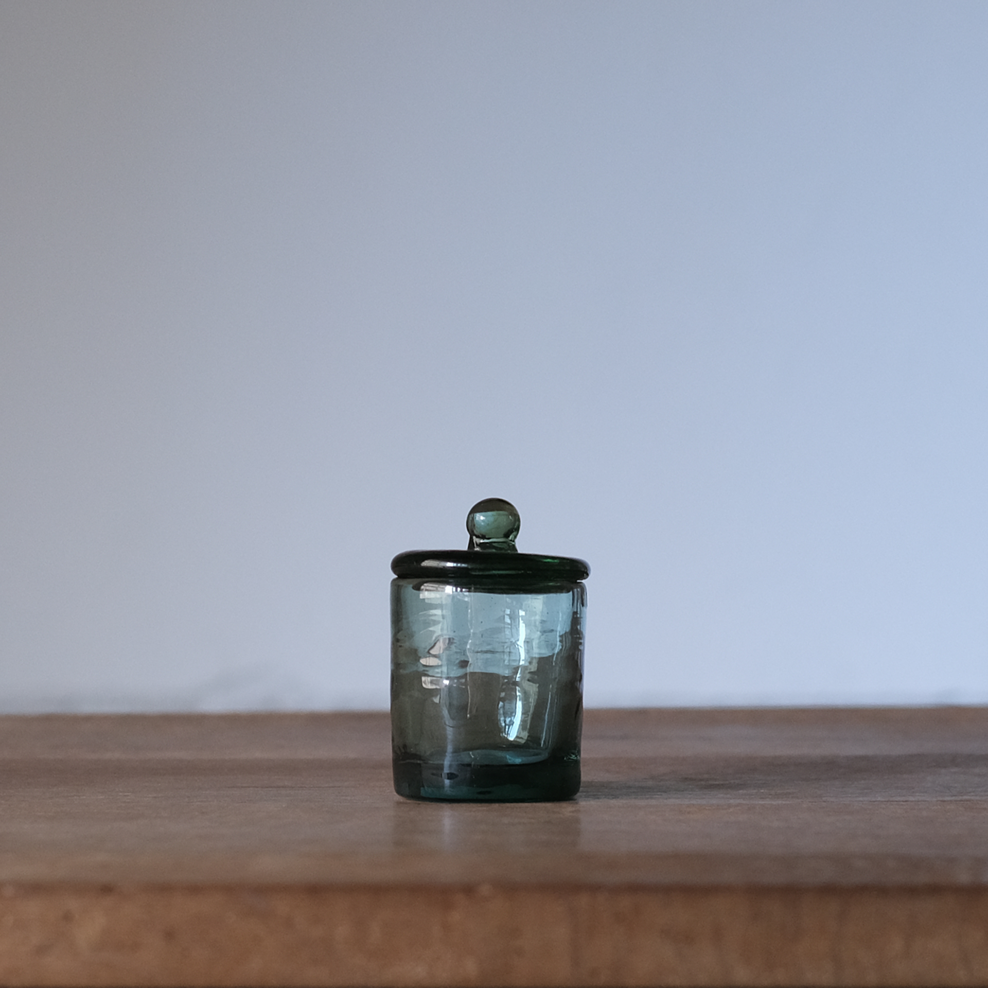 すっきりとした筒型のフォルムが美しい、ニジノハさんのガラスの薬味入れ。