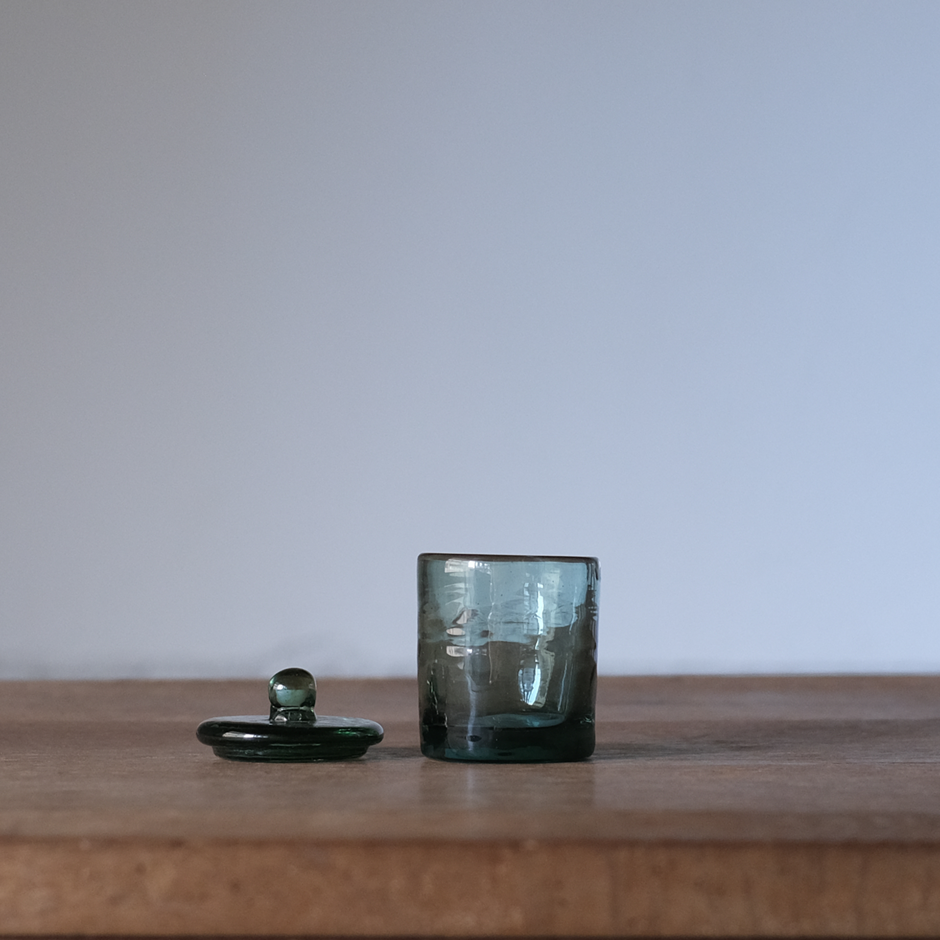 再生ガラスならではの厚みとゆらぎがやわらかな表情をつくります。