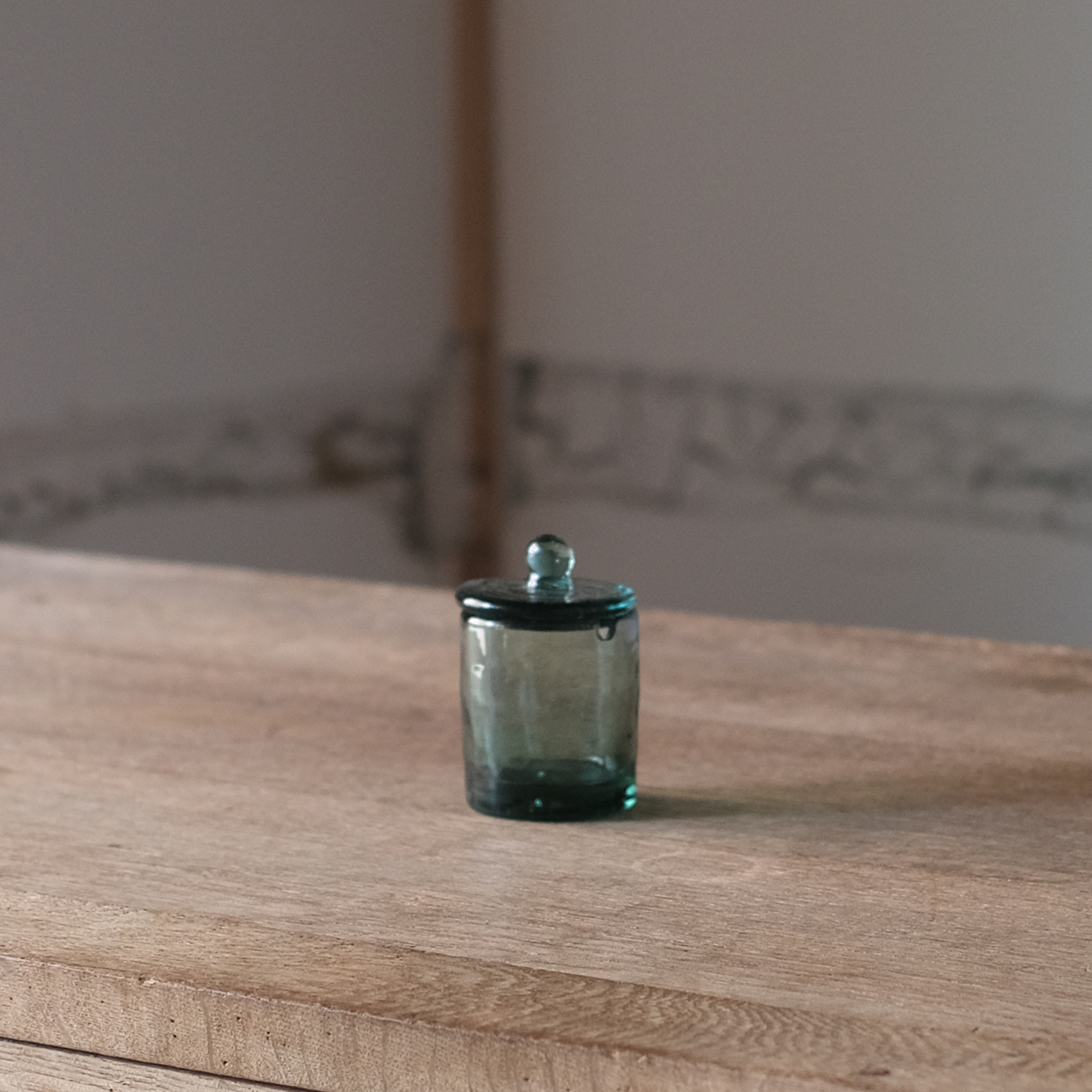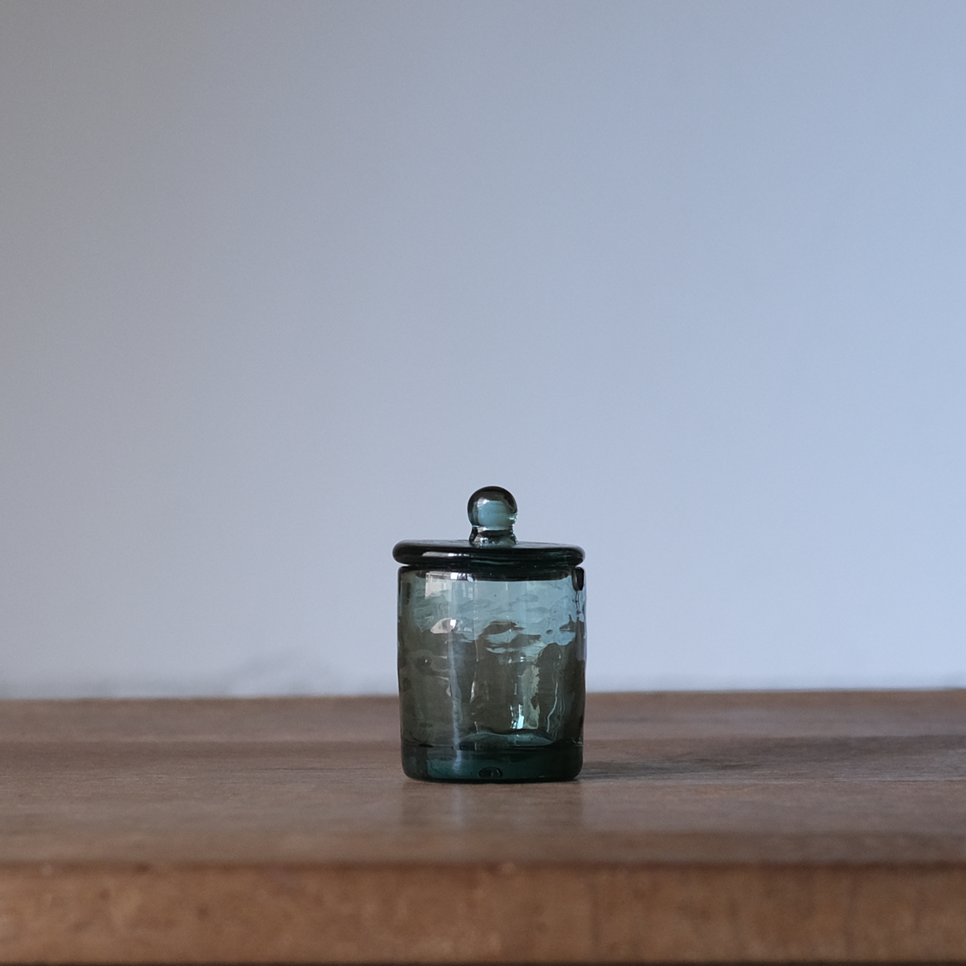 すっきりとした筒型のフォルムが美しい、ニジノハさんのガラスの薬味入れ。