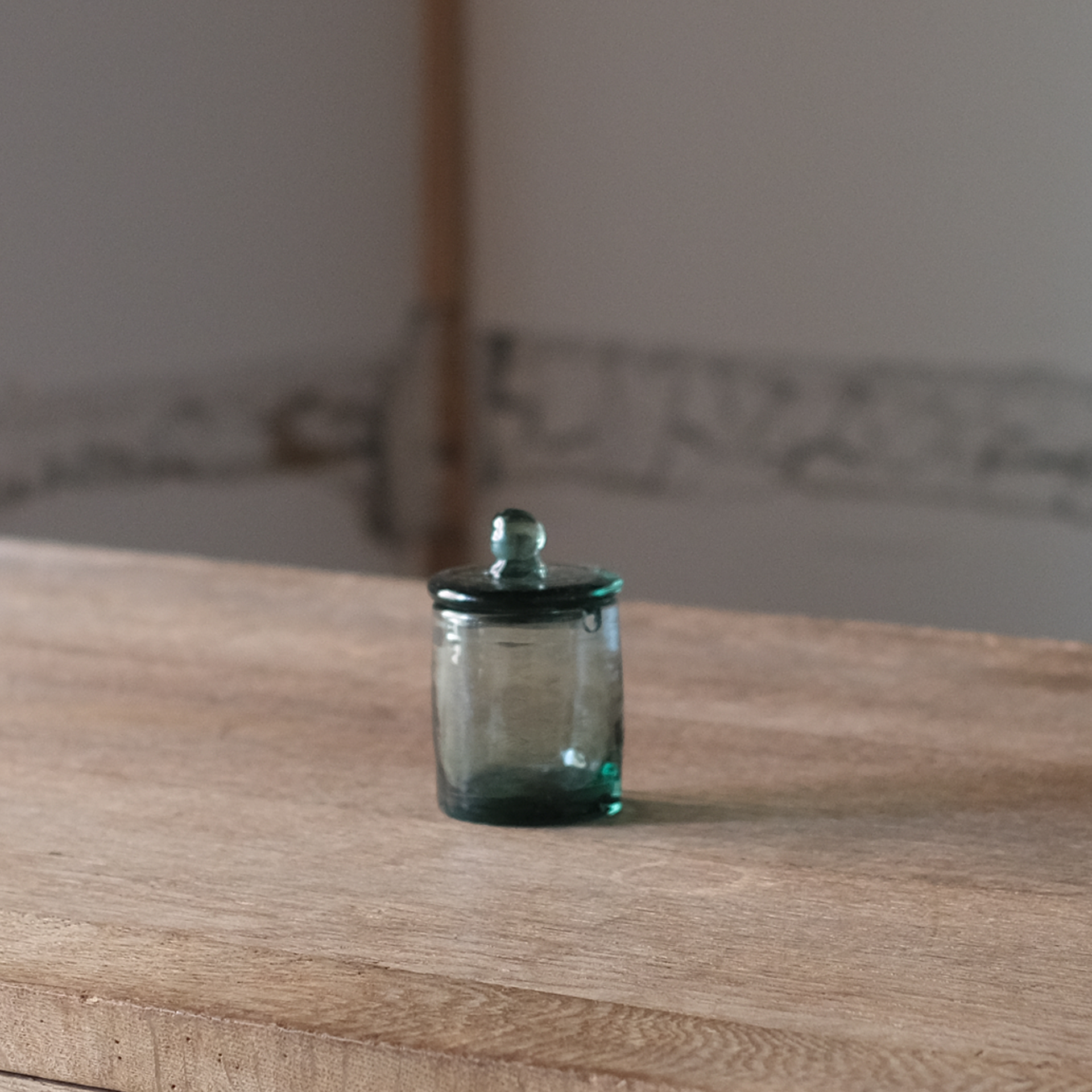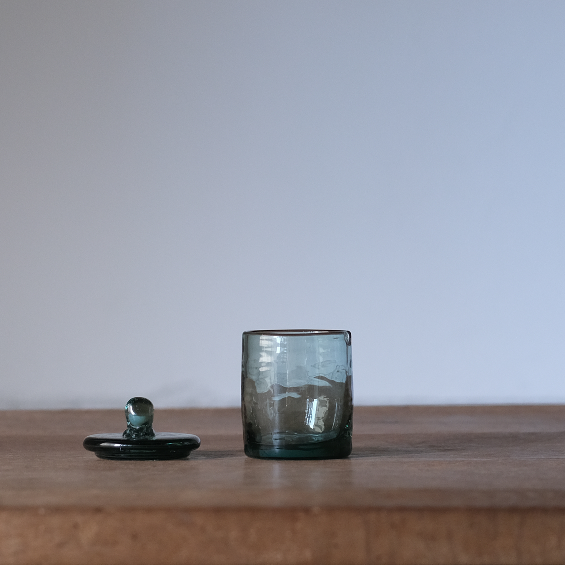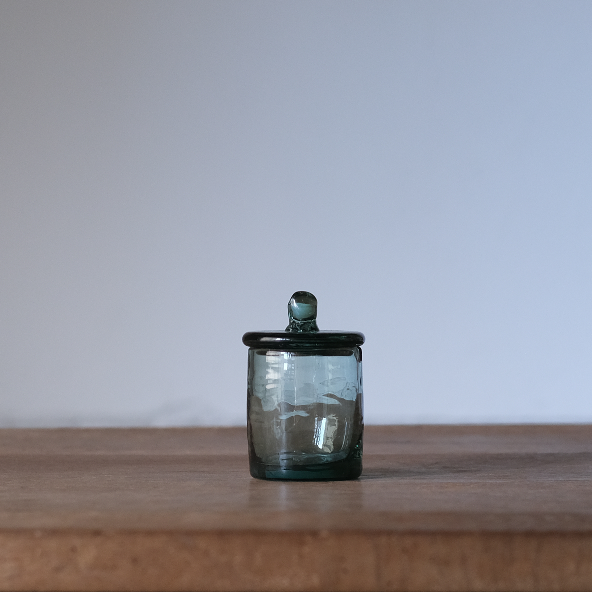 すっきりとした筒型のフォルムが美しい、ニジノハさんのガラスの薬味入れ。