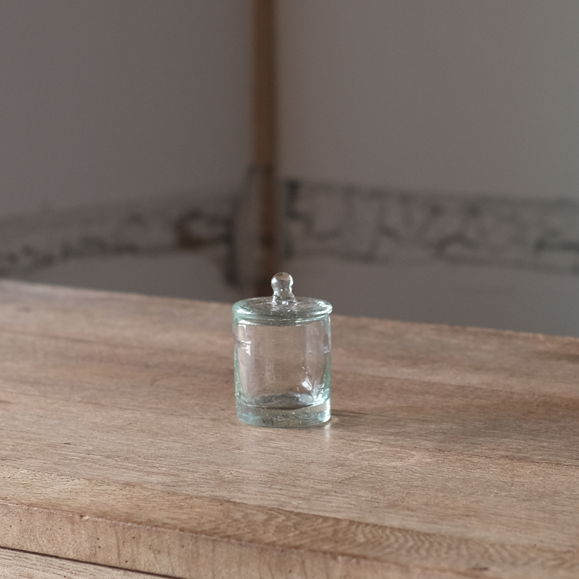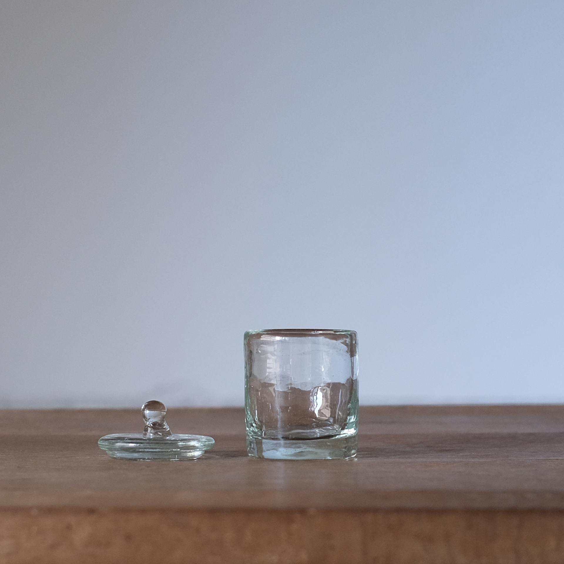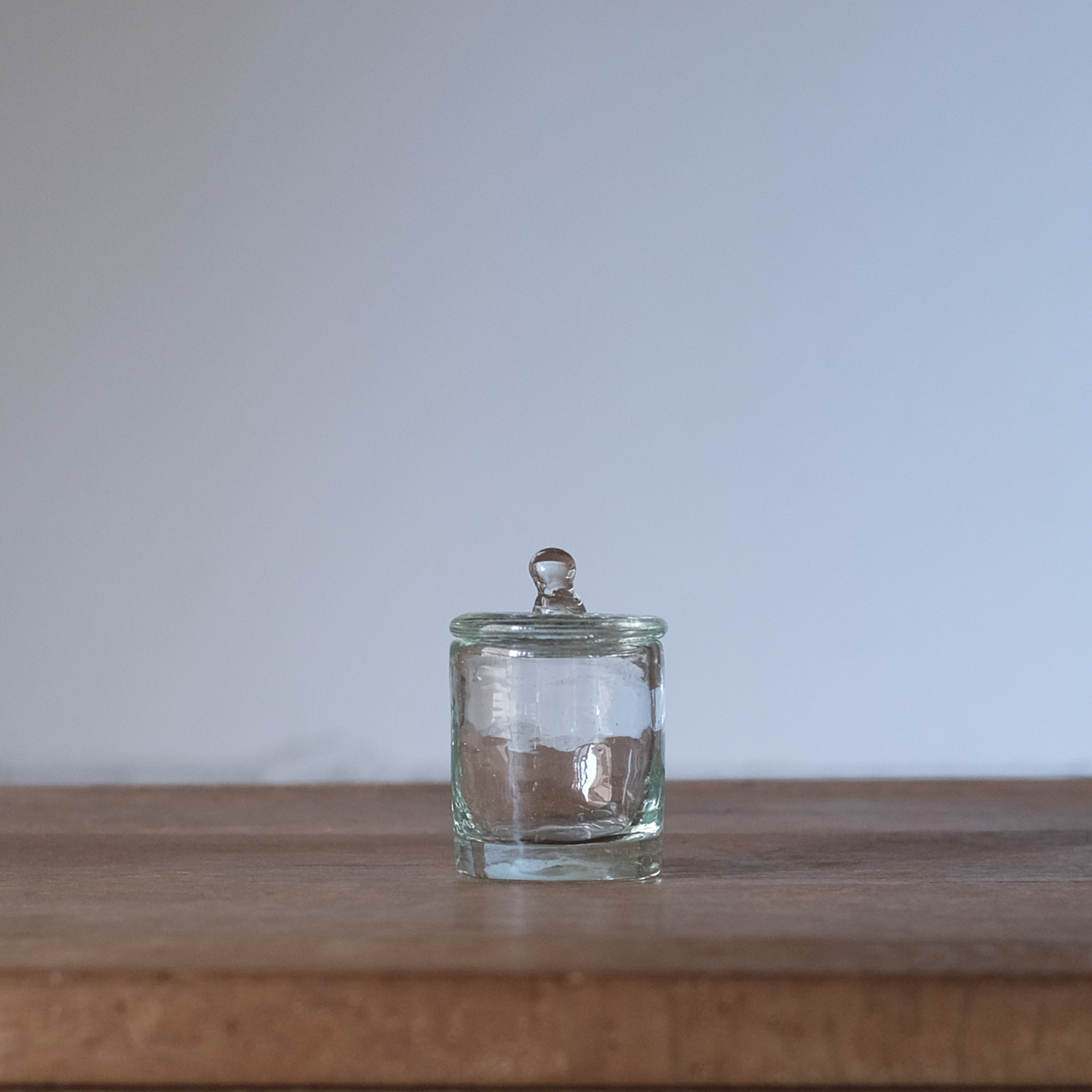 すっきりとした筒型のフォルムが美しい、ニジノハさんのガラスの薬味入れ。