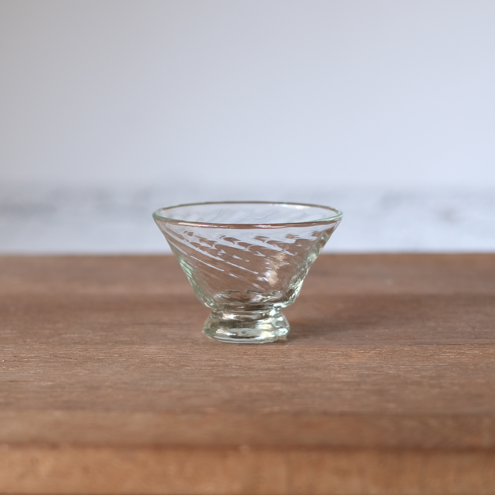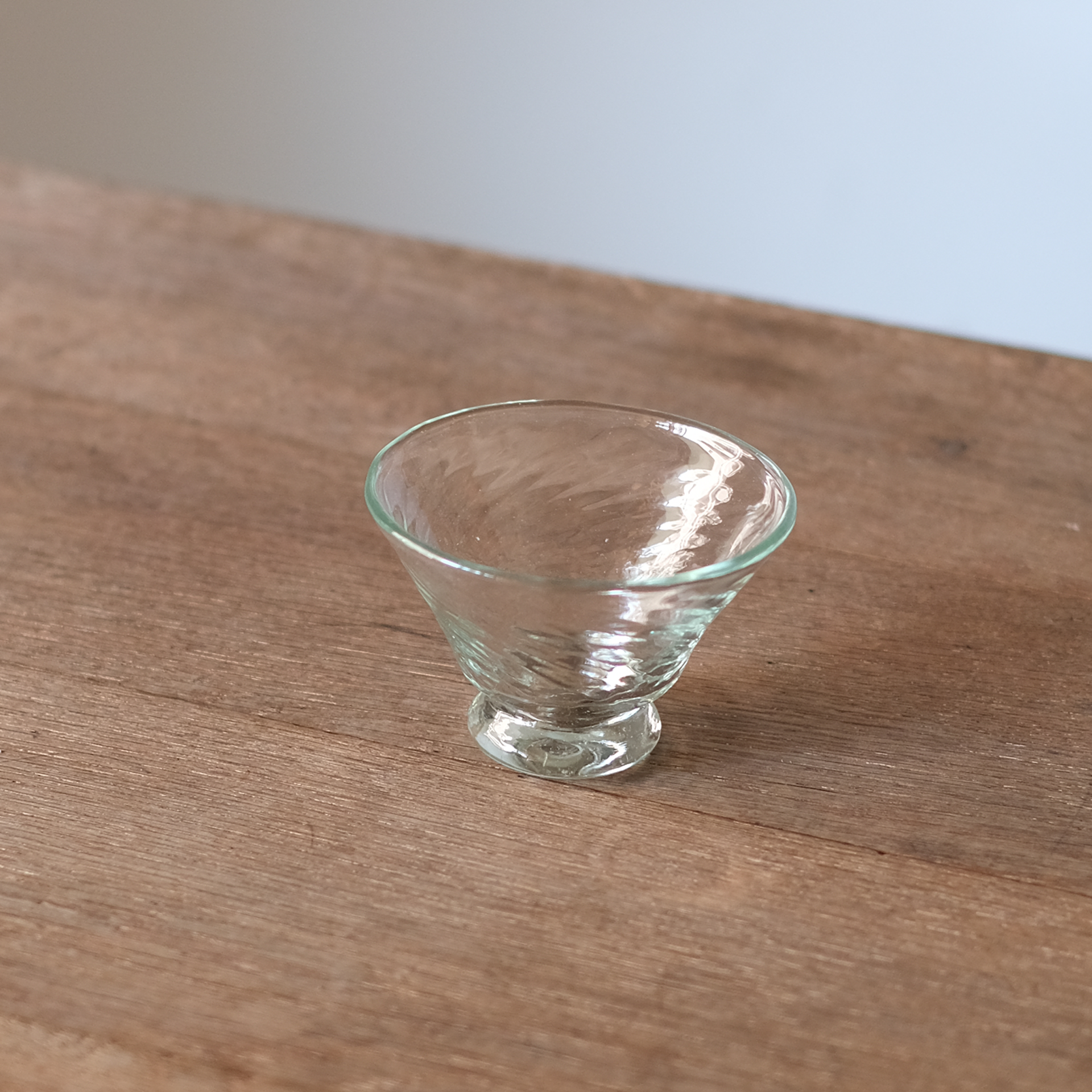 再生ガラスならではの、やわらかな光のゆらぎと、手に持ったときのほどよい厚み。