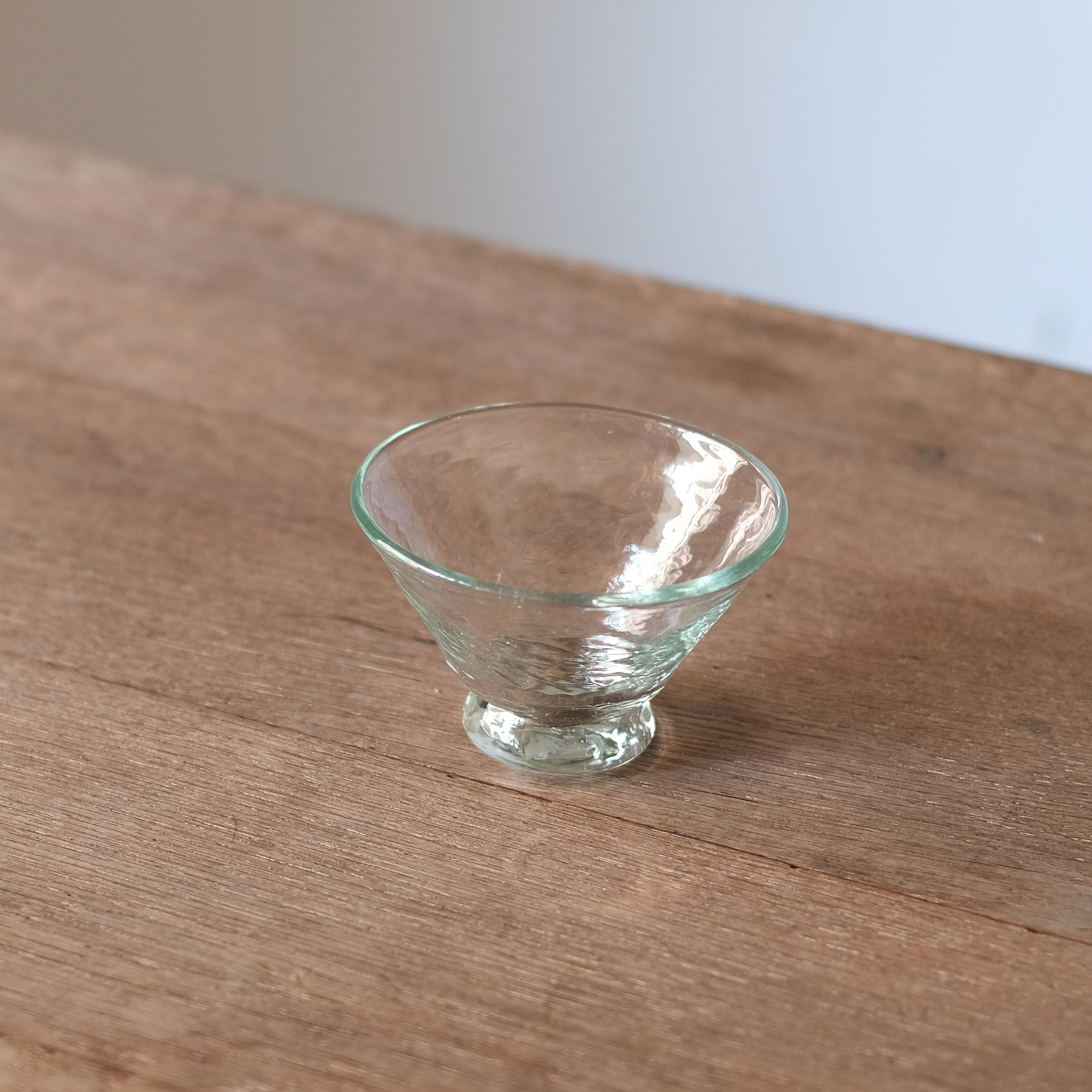 再生ガラスならではの、やわらかな光のゆらぎと、手に持ったときのほどよい厚み。