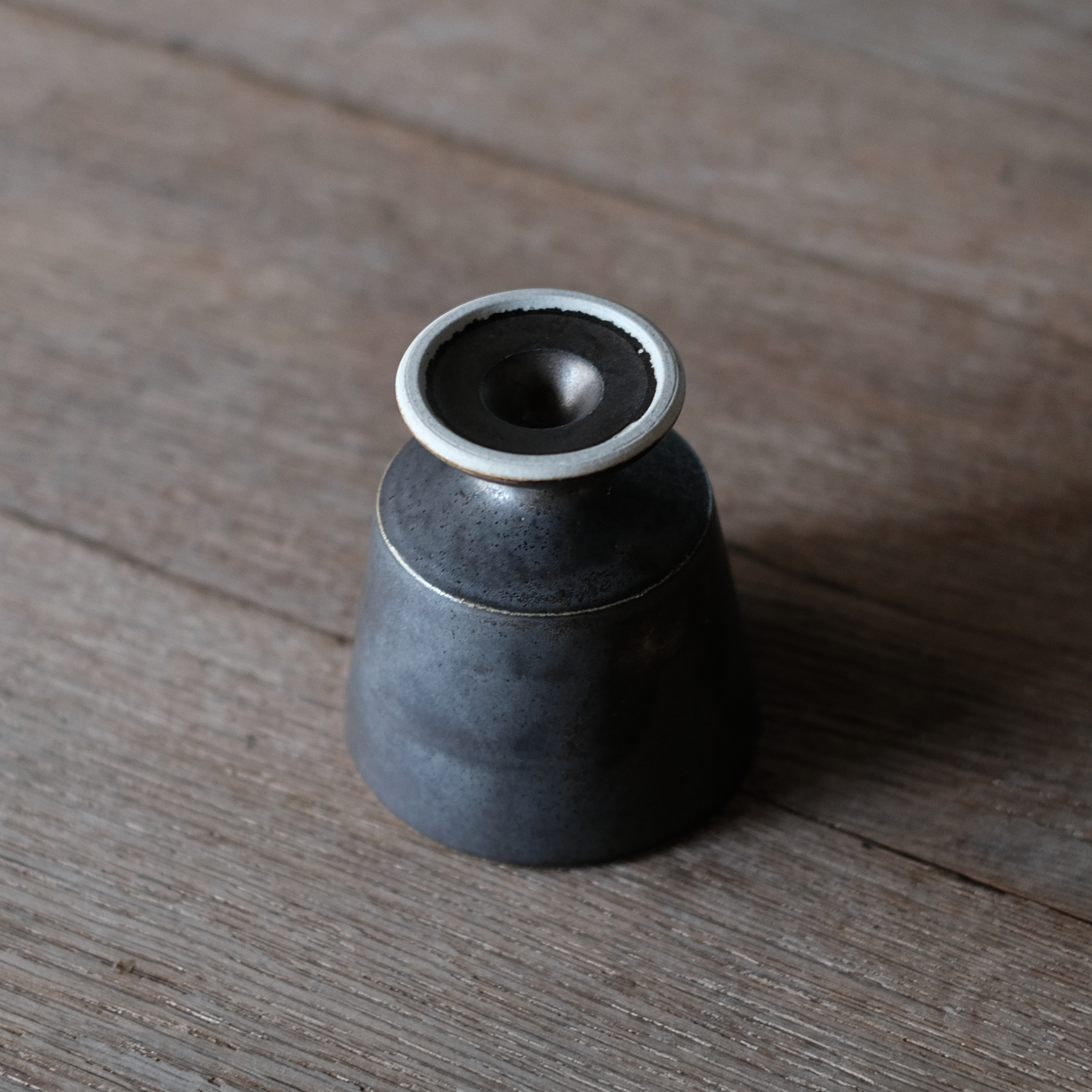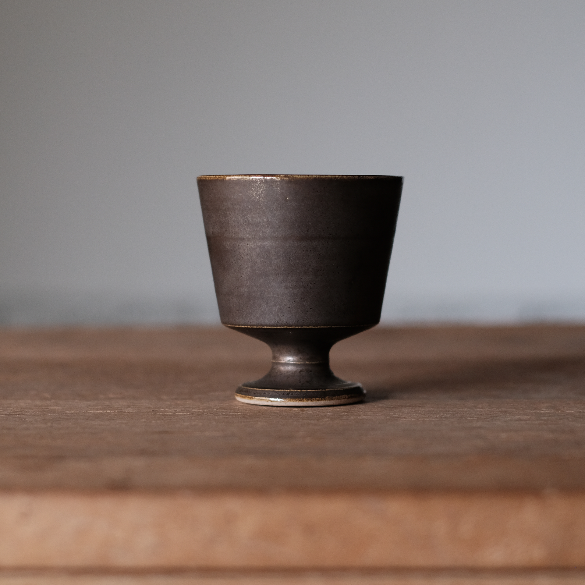 外側は茶色の釉薬、内側は暖かみのある白い釉薬でかけ分けられたゴブレット。