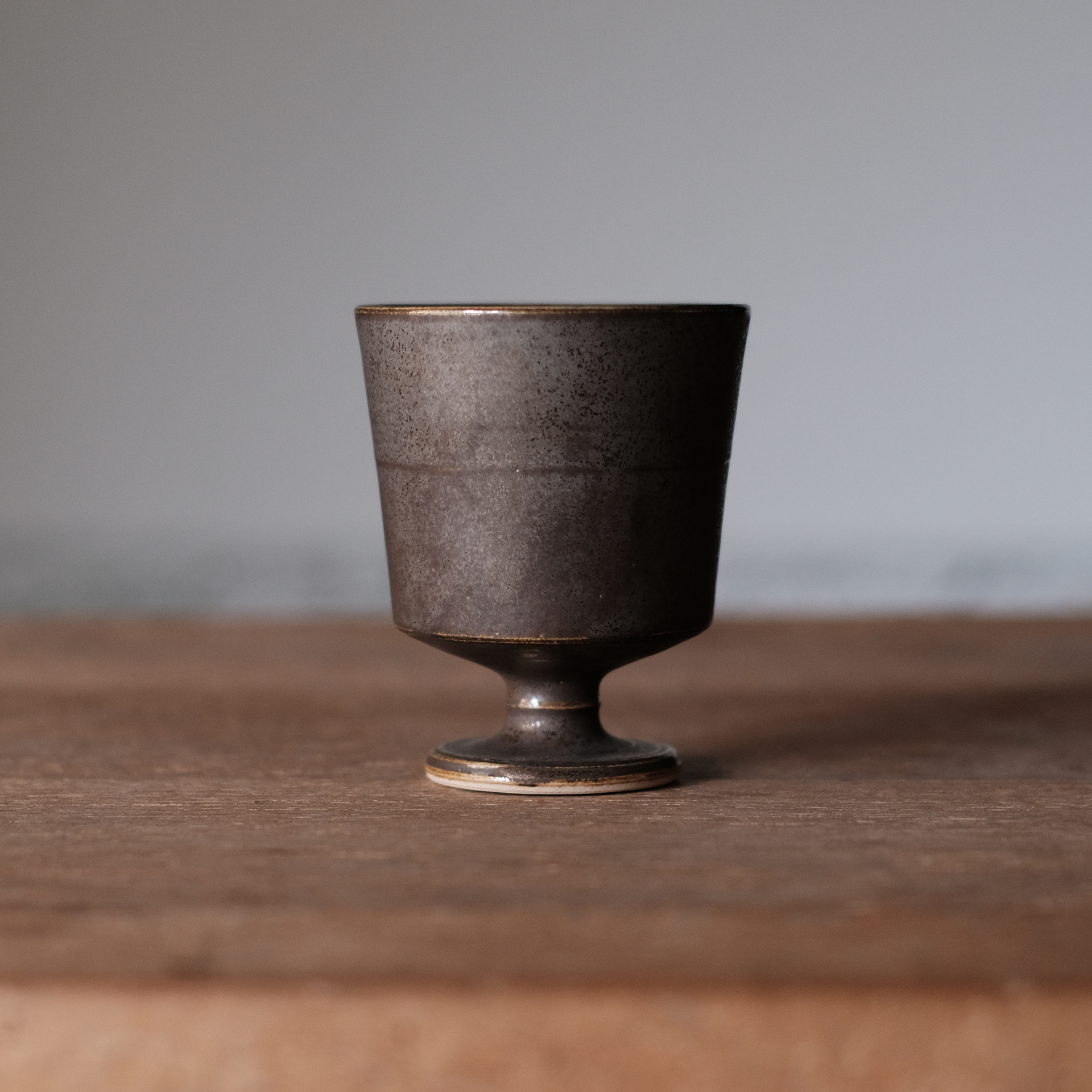 外側は茶色の釉薬、内側は暖かみのある白い釉薬でかけ分けられたゴブレット。