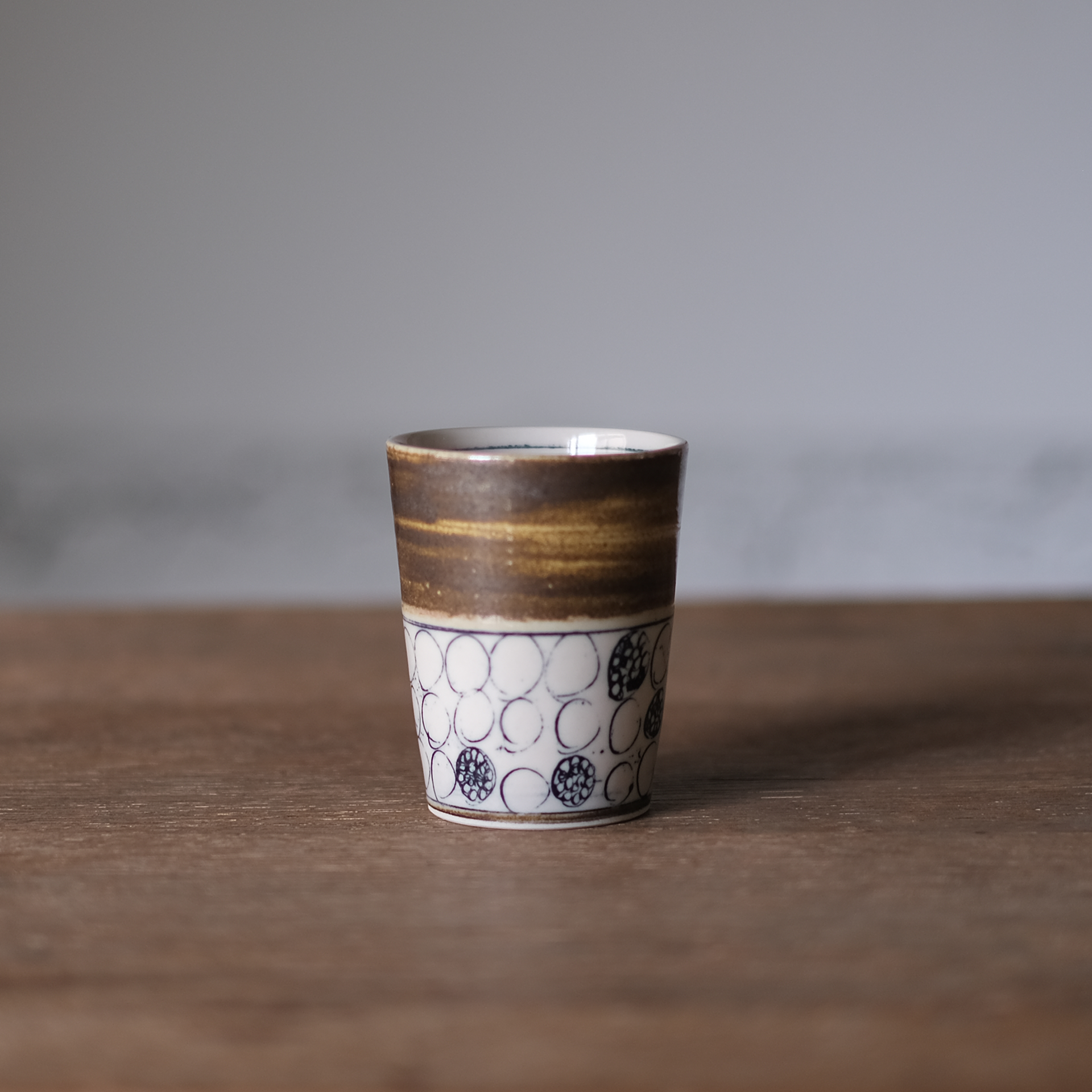 象嵌の技法を用いた手書きの模様と、茶色の釉薬による装飾が、お酒の時間をさらに楽しくしてくれそうです。