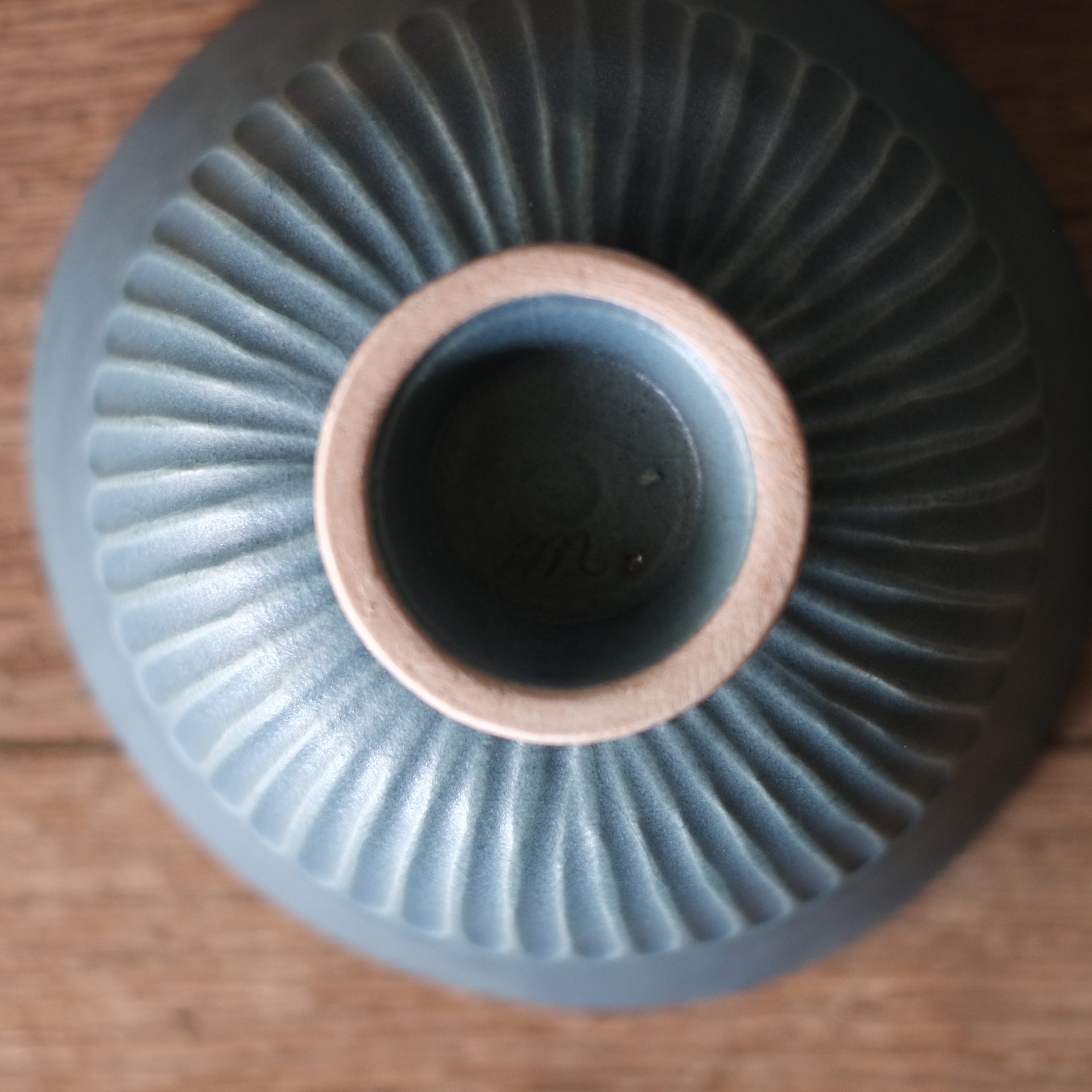 また、底には石渡磨美さんのサインの「m.」が入っております。