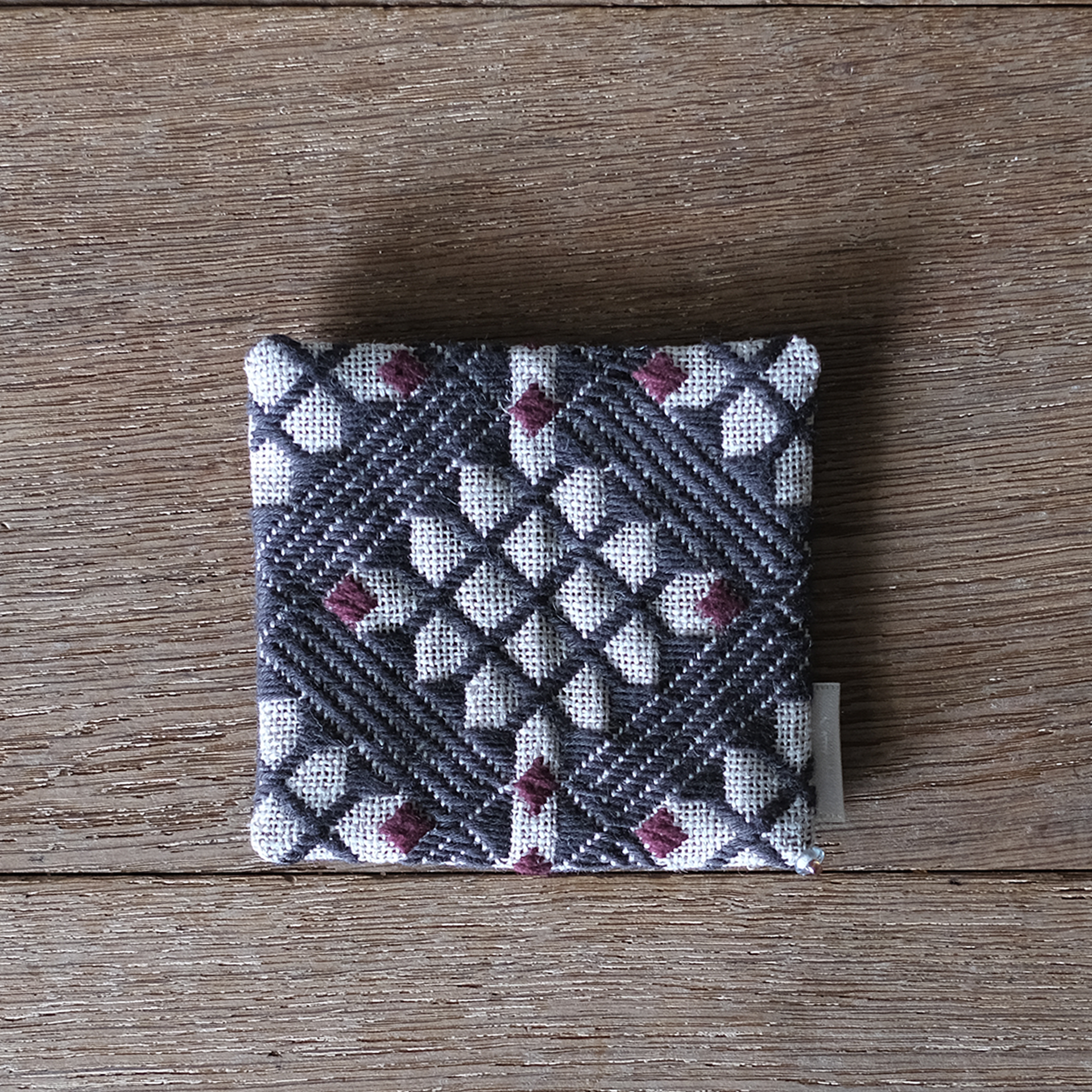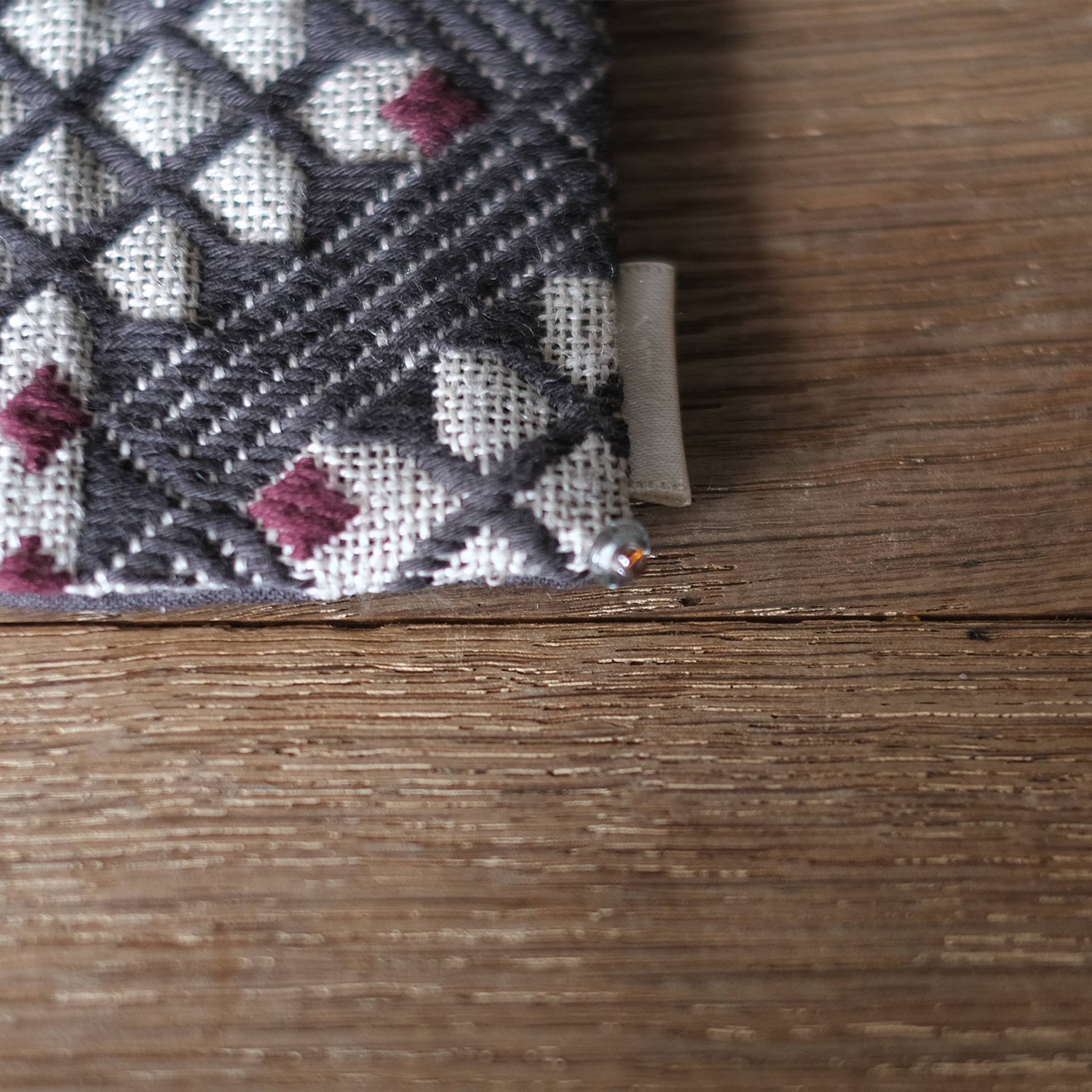 縦糸の奇数目を数えながら刺すことで、独特の模様が生み出されます。