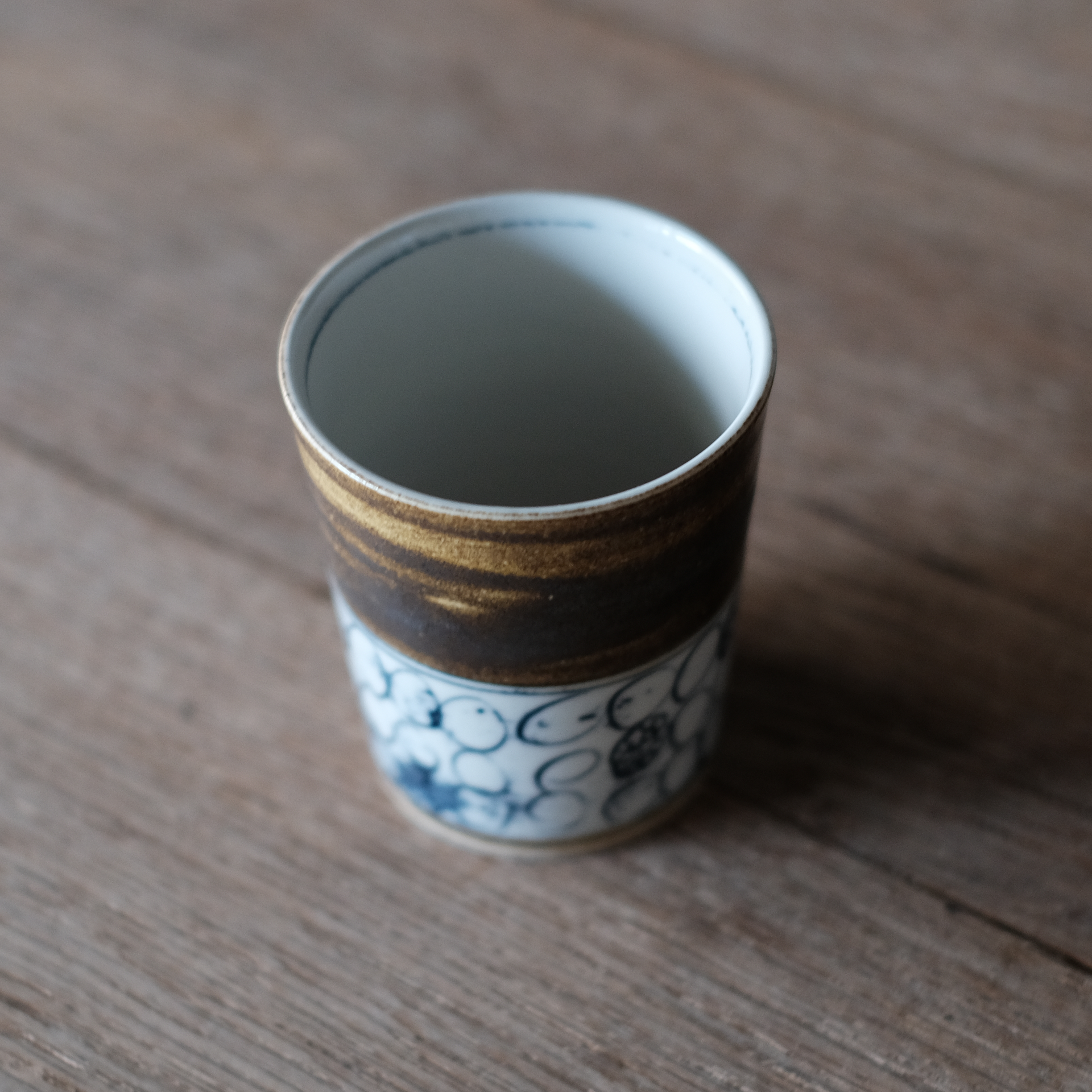 象嵌の技法を用いた手書きの模様と、茶色の釉薬による装飾が、お酒の時間をさらに楽しくしてくれそうです。