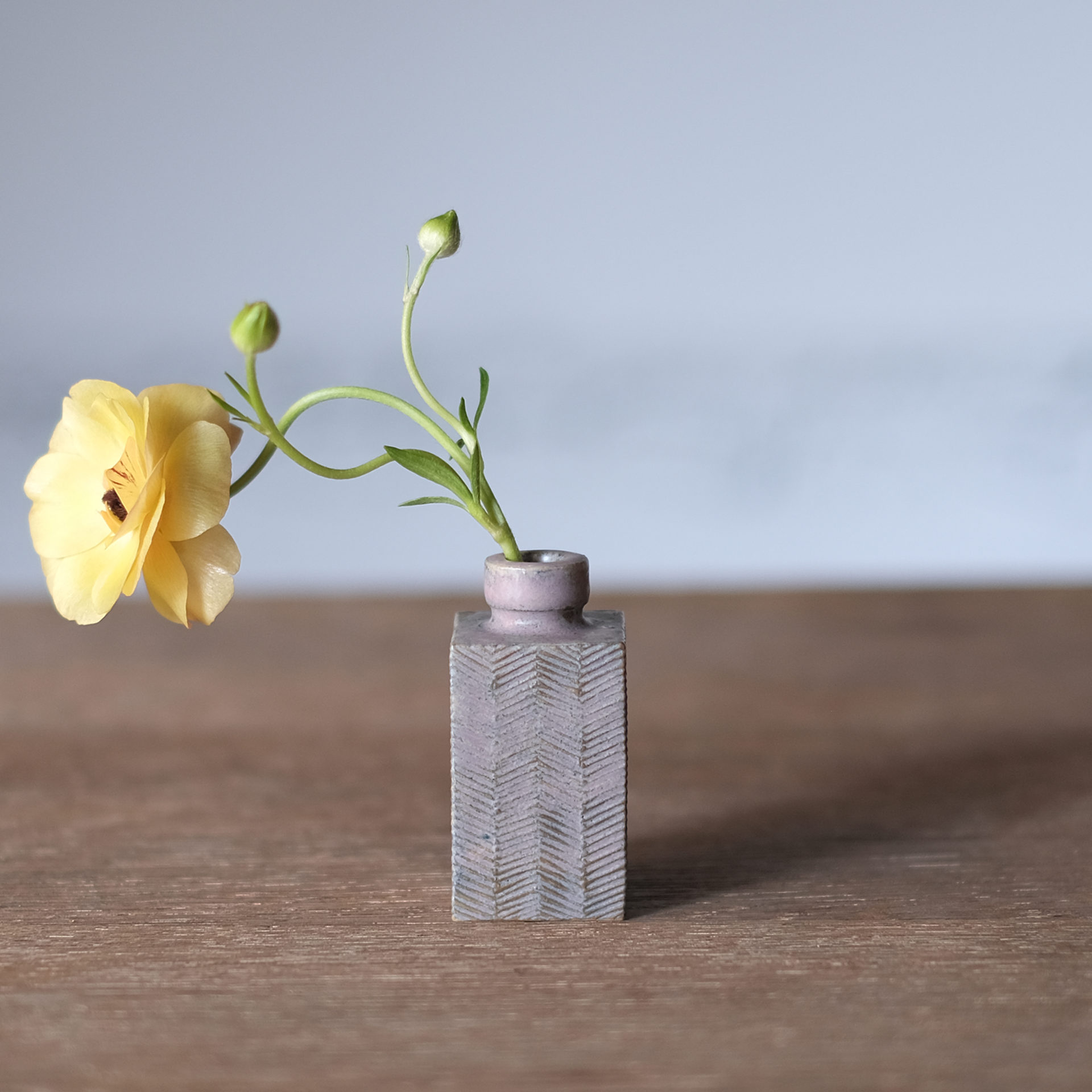 胴体は、細かな線の模様が入っていてヘリンボーンのような模様と、グレーにピングがかった色味が面白い表情です。
