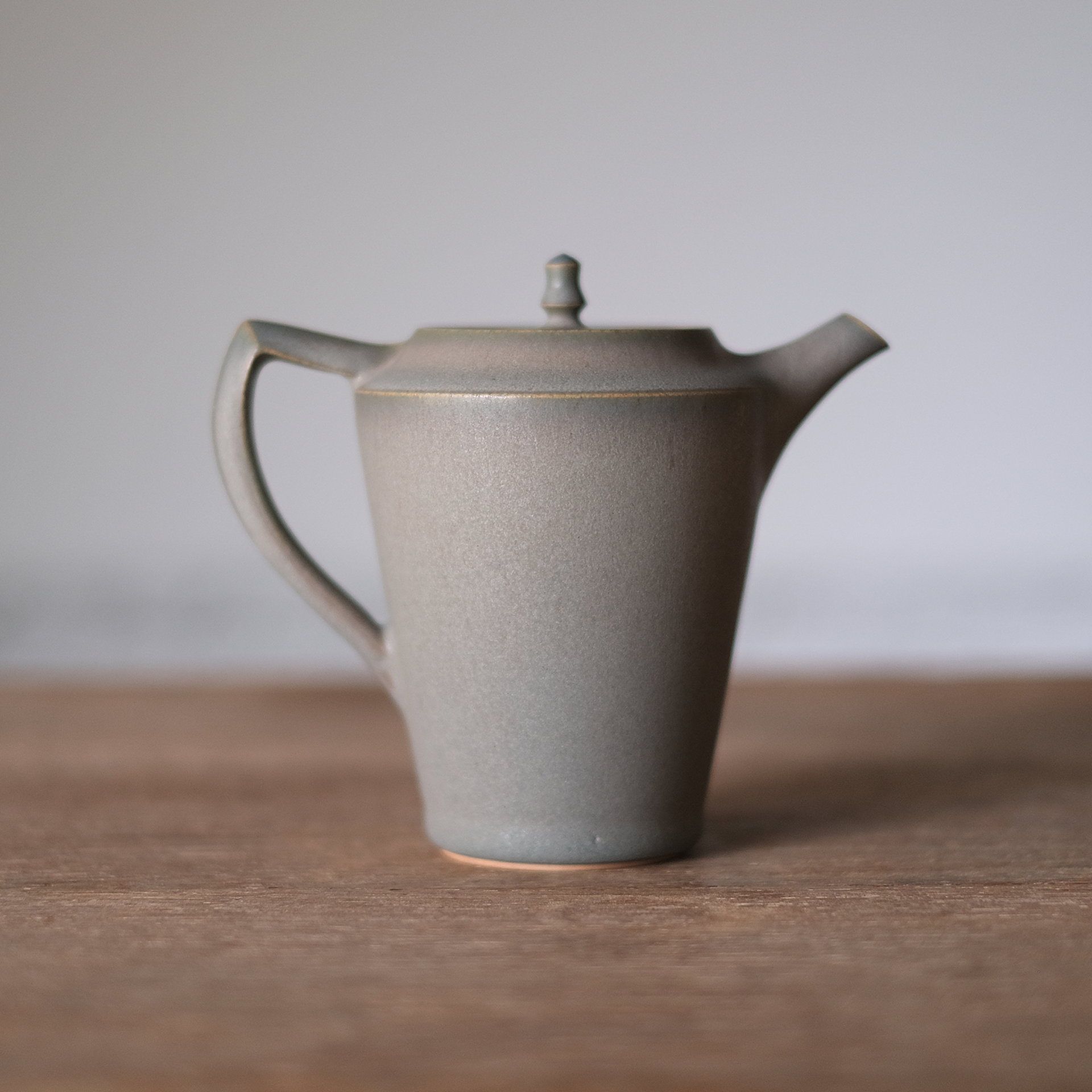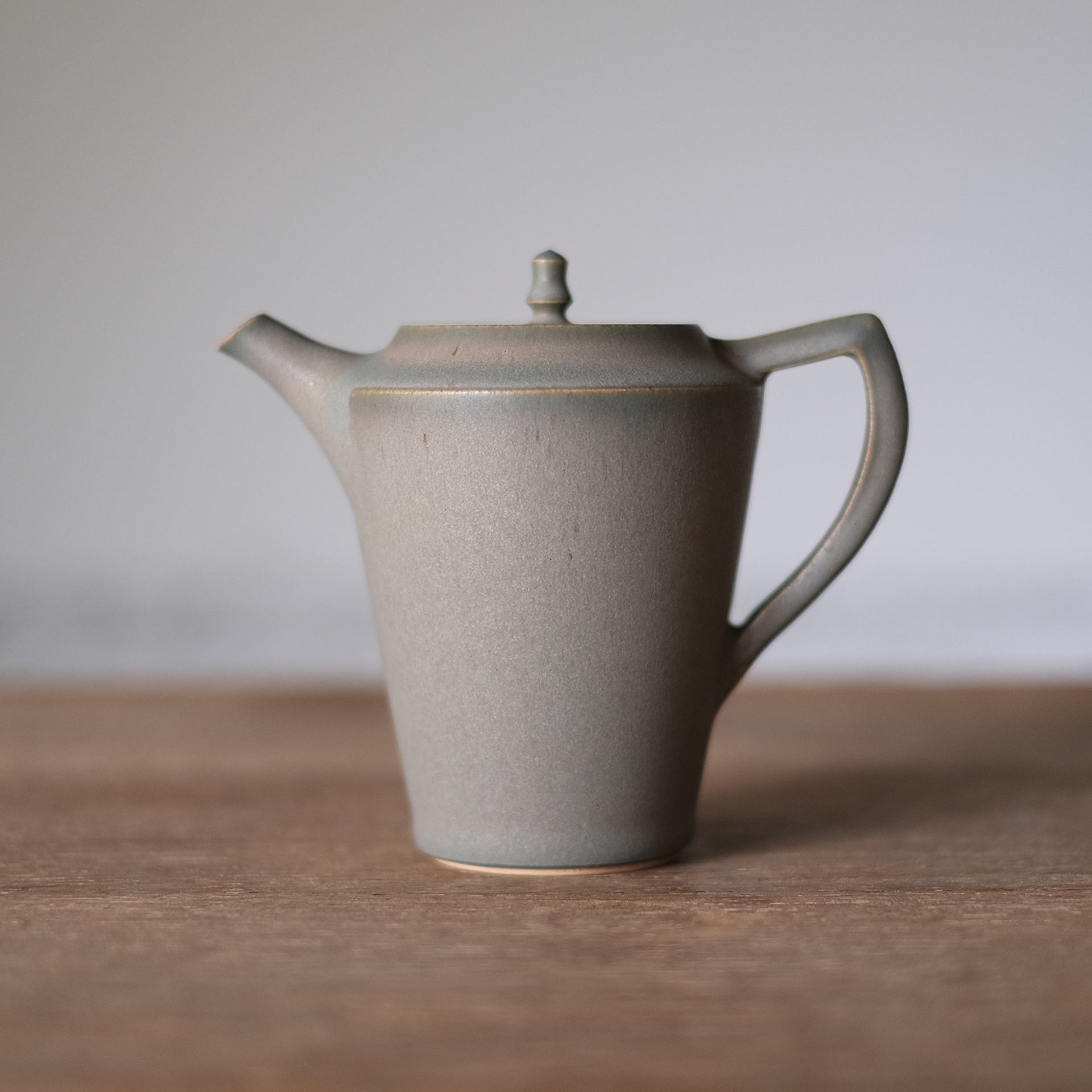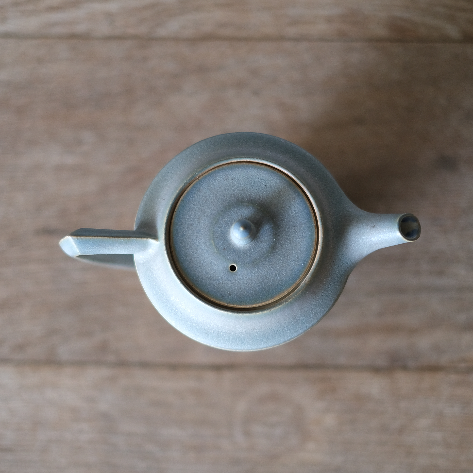 灰色がかった青みのあるティーポット。スタイリッシュな見た目がかっこいいです。