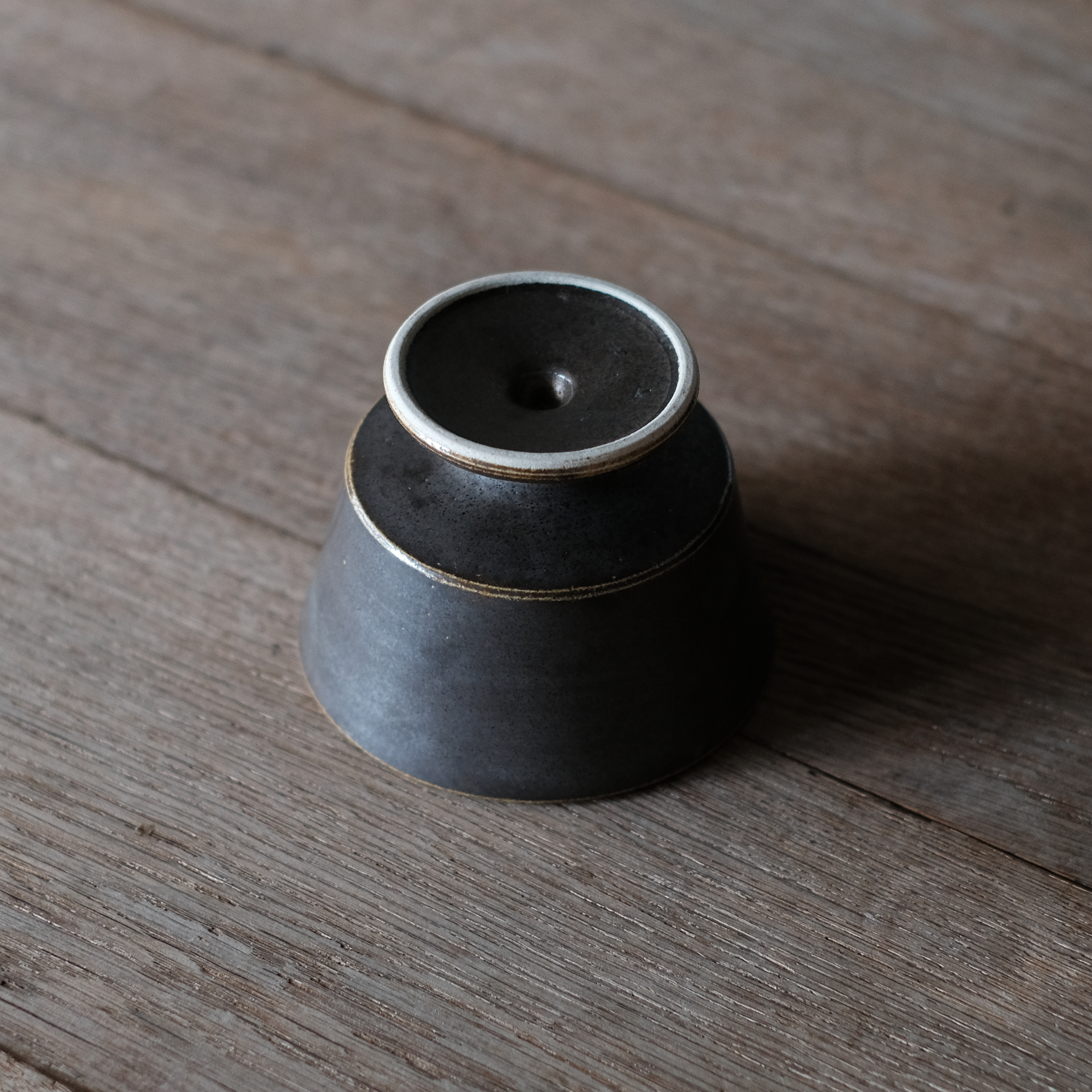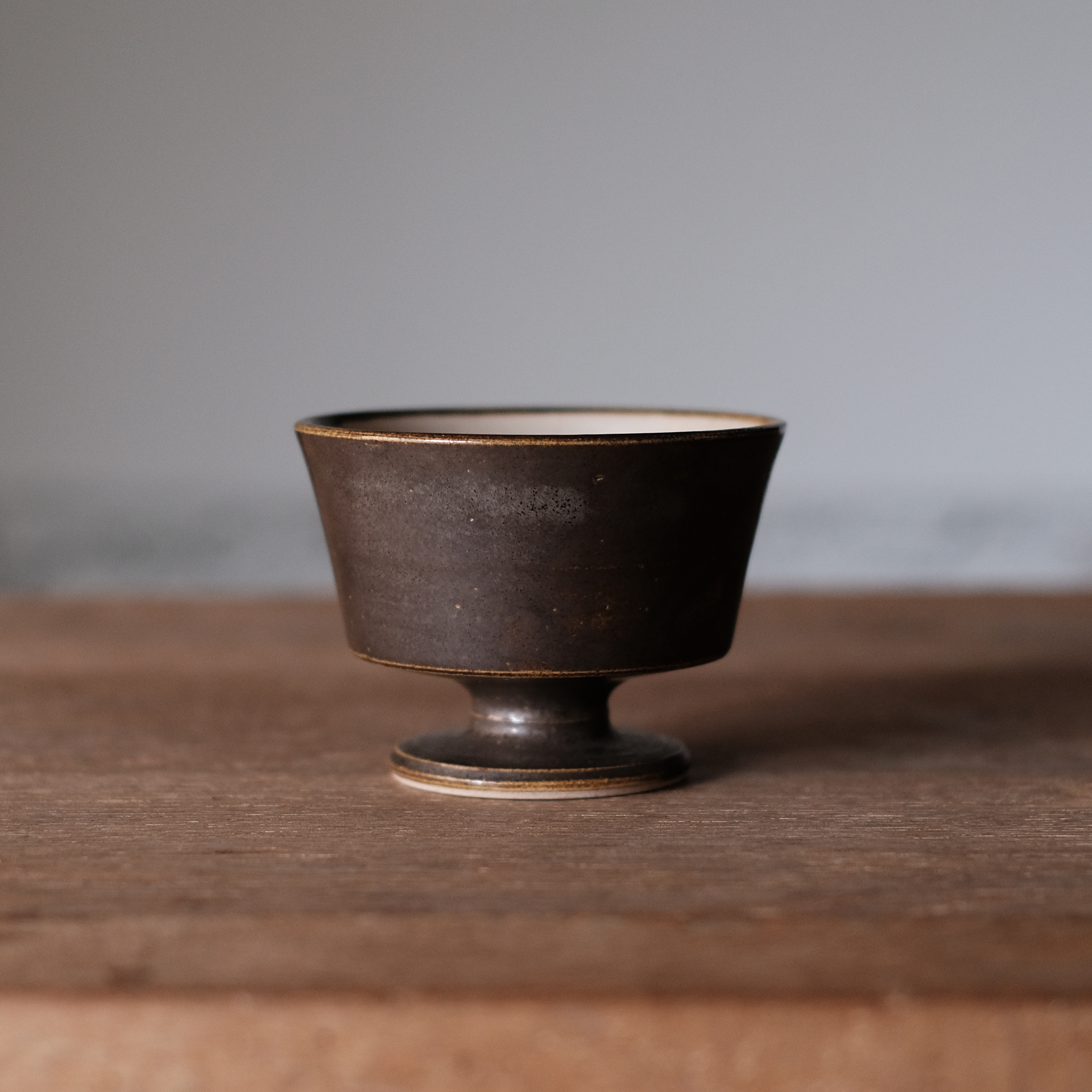 外側は茶色の釉薬、内側は暖かみのある白い釉薬でかけ分けられたデザートカップです。