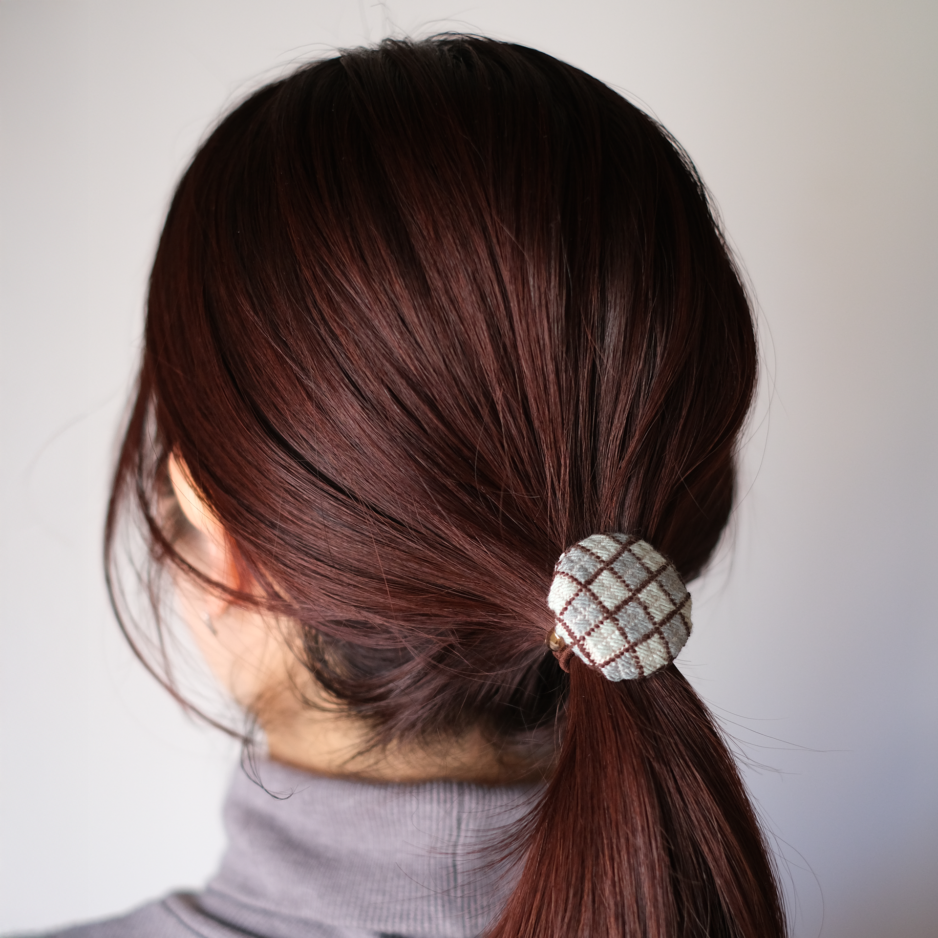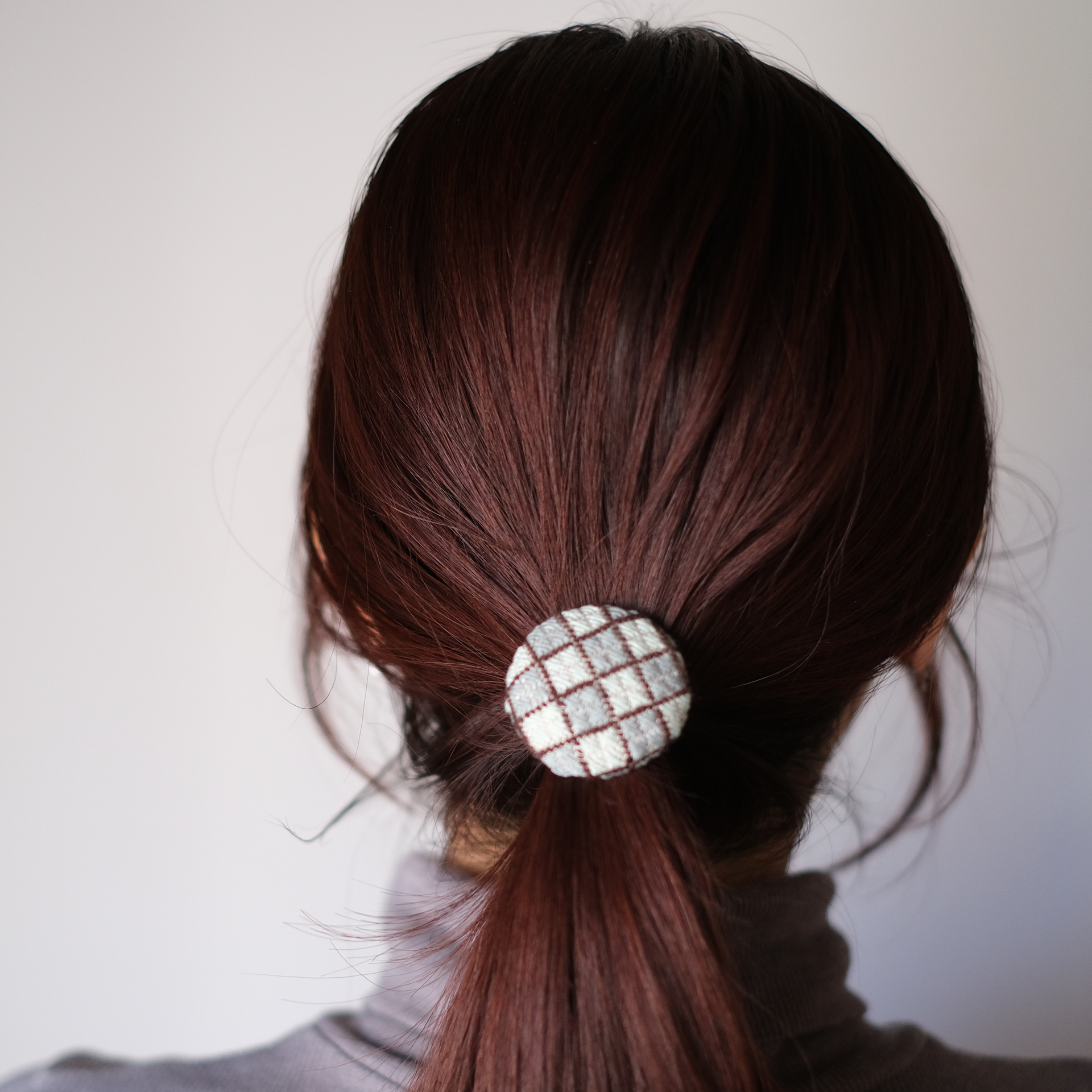 一針一針心をこめて刺しているこぎん刺しのヘアゴム。贈り物にもおすすめです。