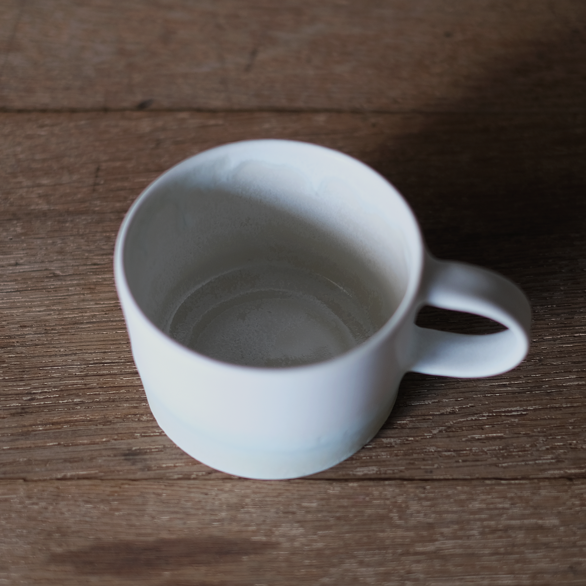 洗練された美しさのなかに手仕事の温かみが感じられる、ACOPOTTERYさんのマグカップ。