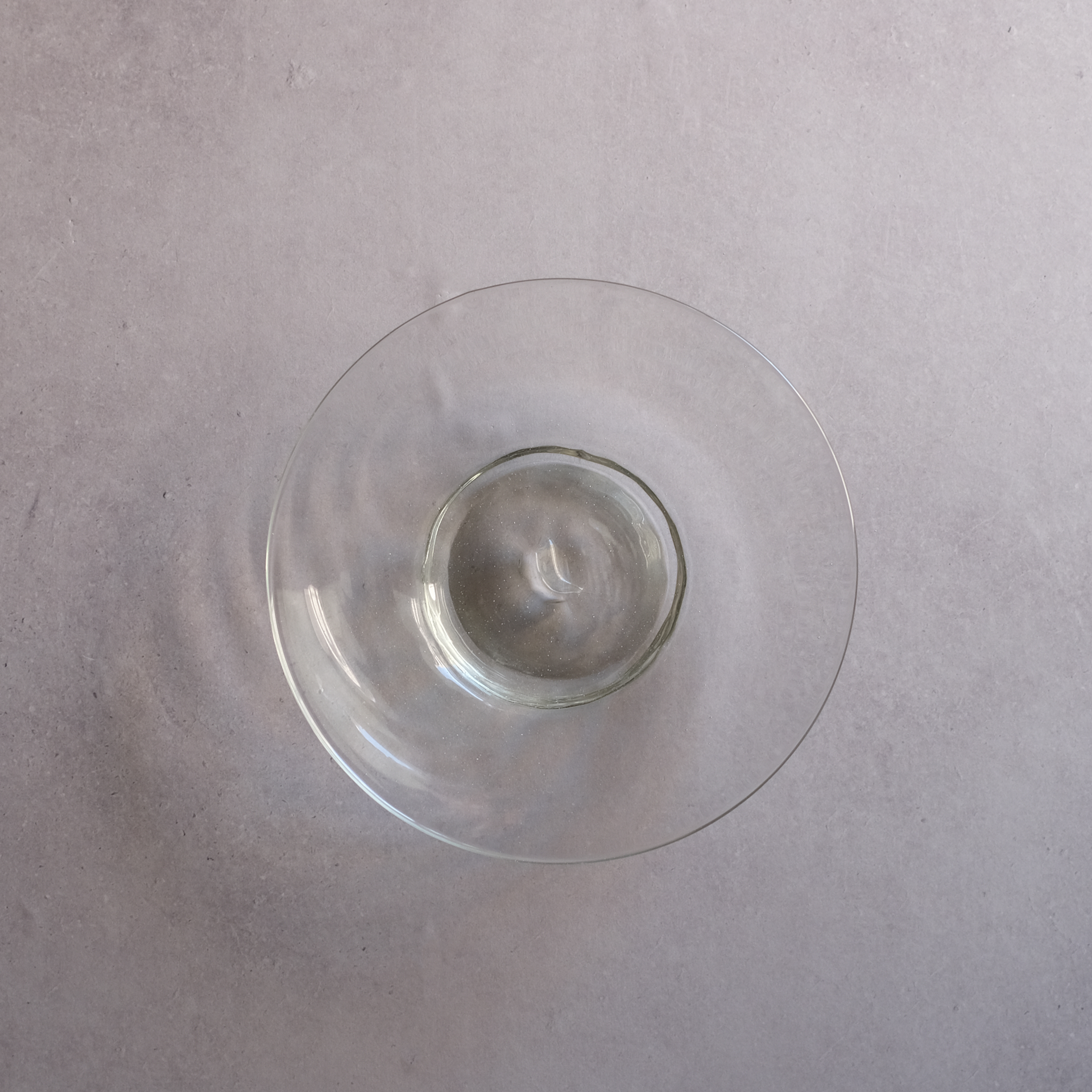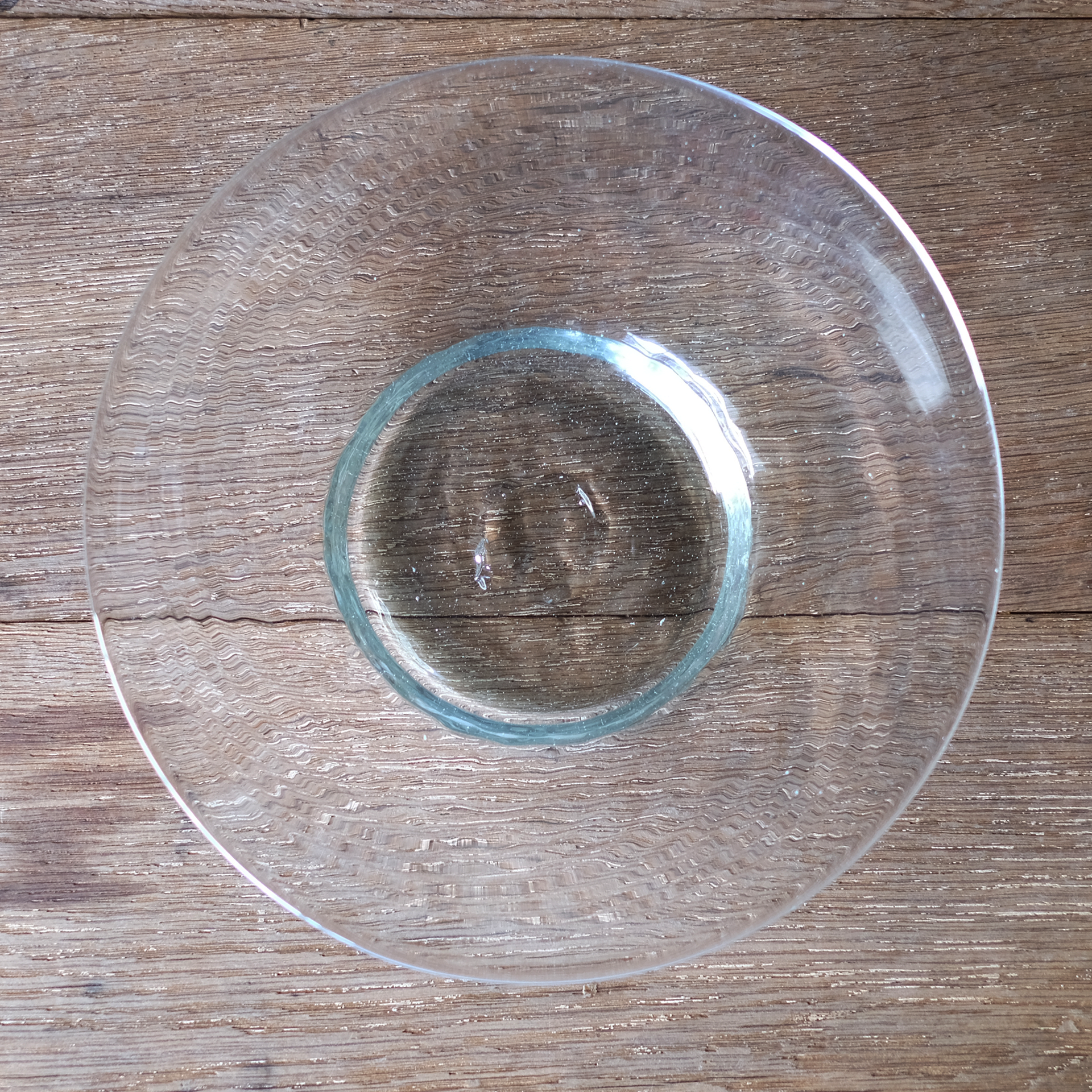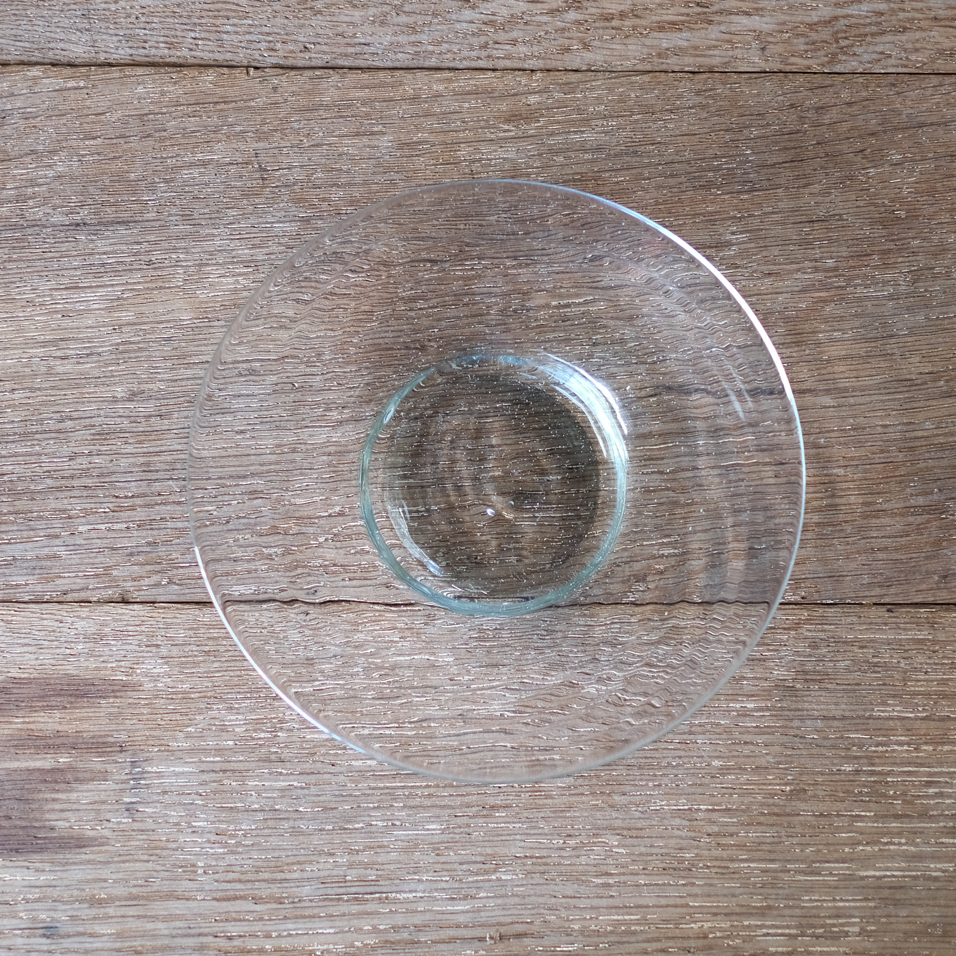 シンプルでどんなテーブルコーディネートにも合うガラスのお皿です。