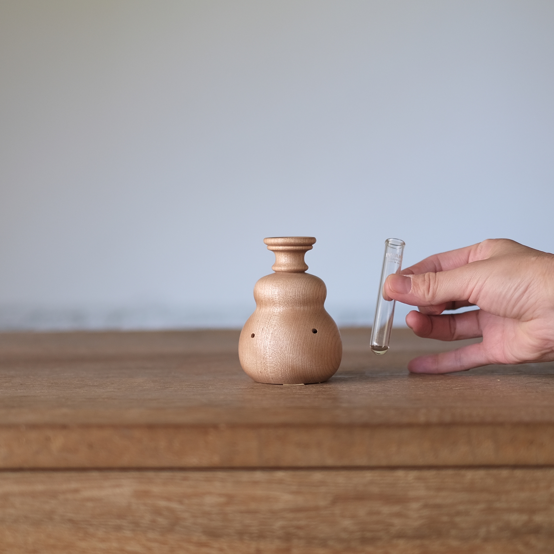 中央には試験管が入っているので、水替えも簡単。木を濡らす心配もありません。