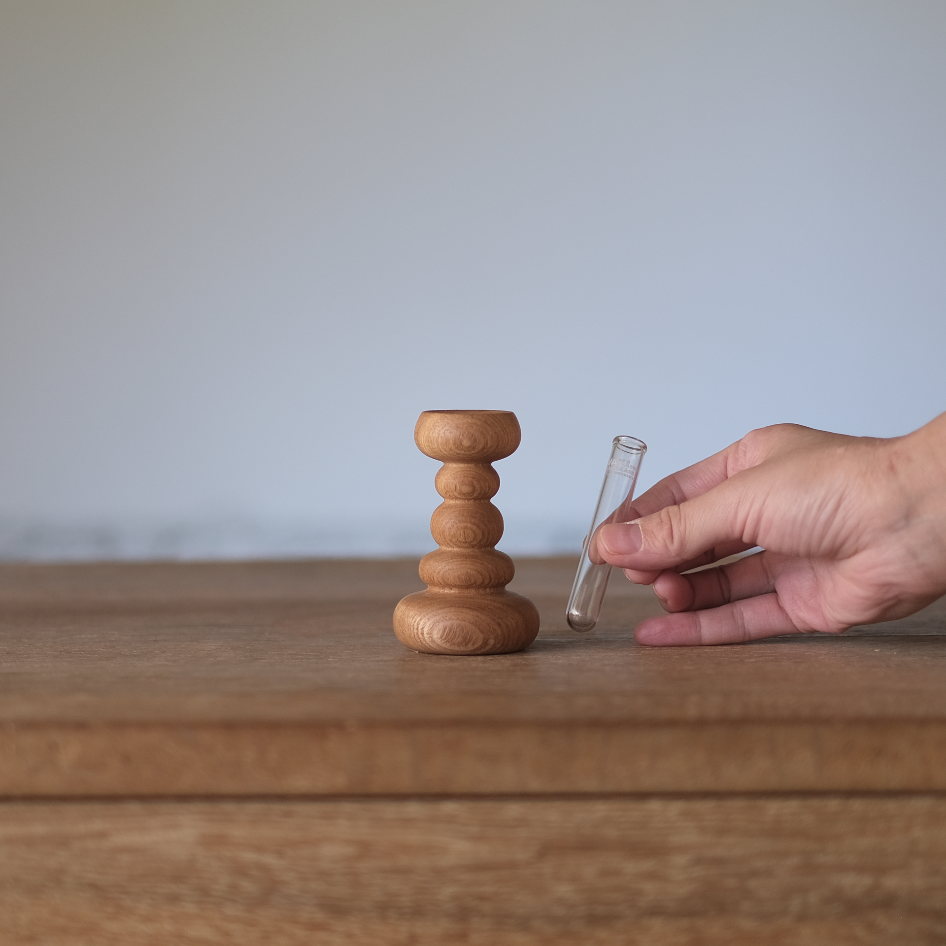 中央には試験管が入っているので、水替えも簡単。木を濡らす心配もありません。