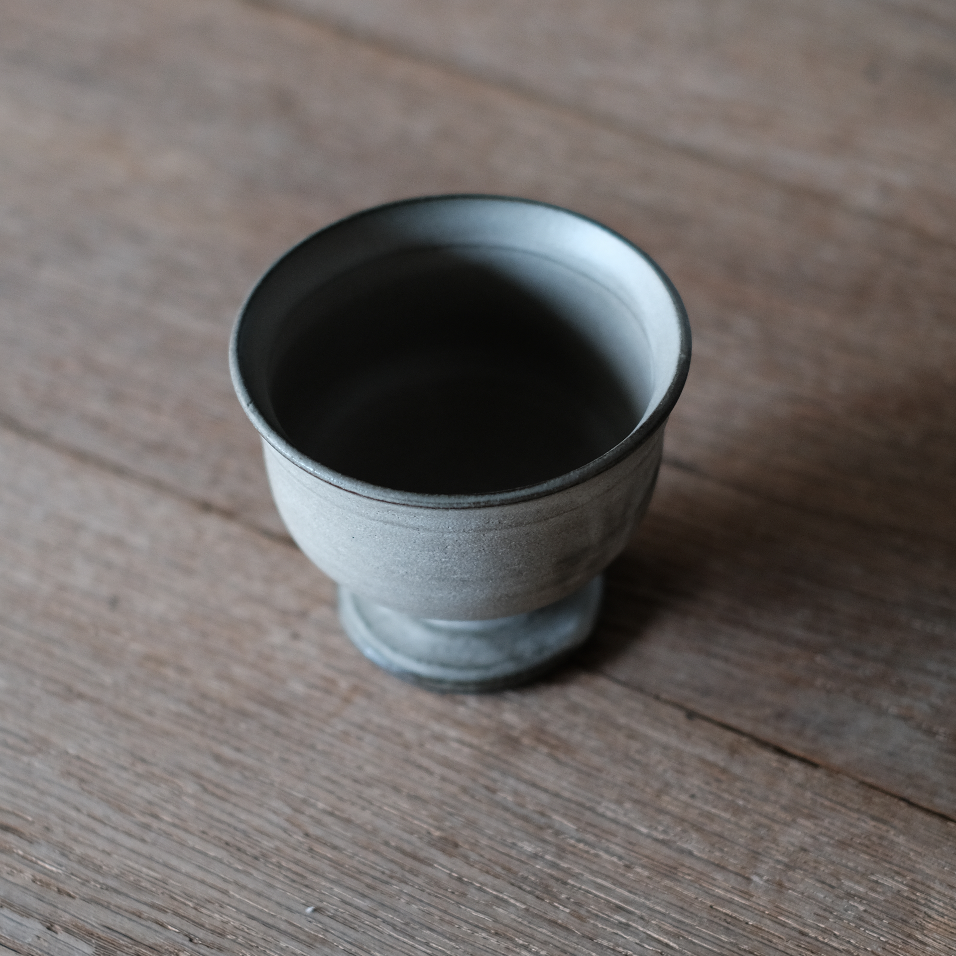 こっくりとしたグレーの色味が優しい、カップ部分が丸型のゴブレット。