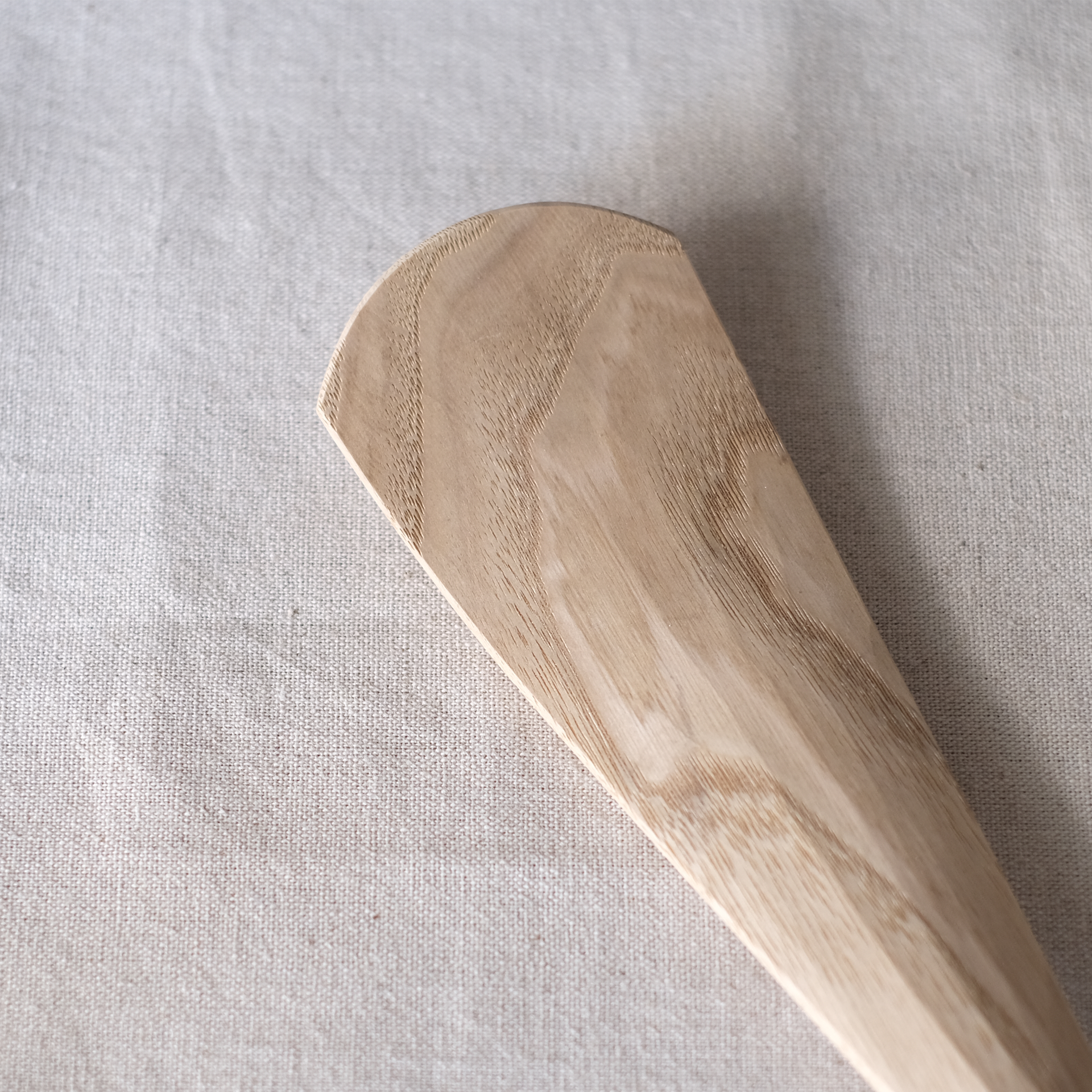 一般的なしゃもじとは異なり特徴的な形の大久保ハウス木工舎の「杓文字 」。