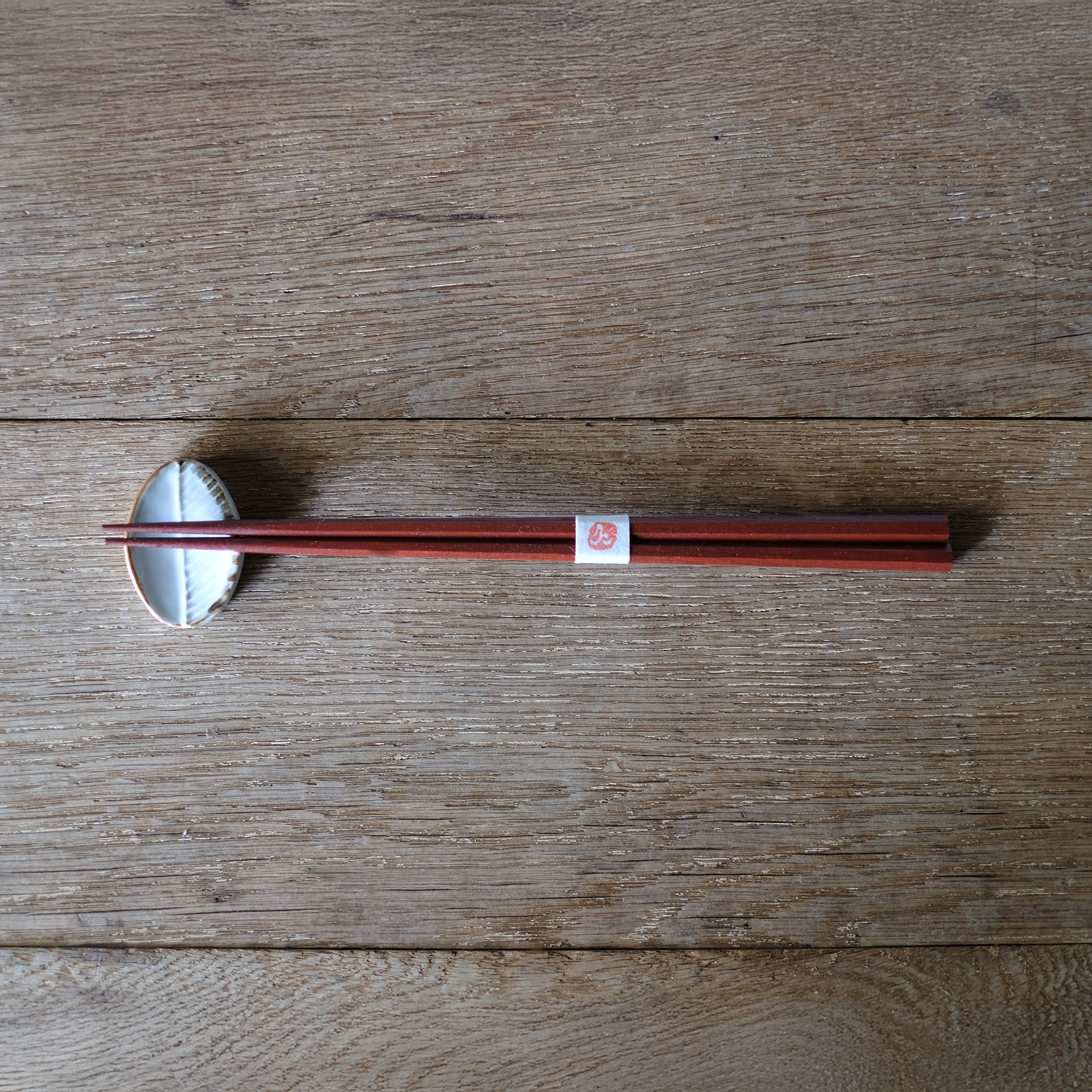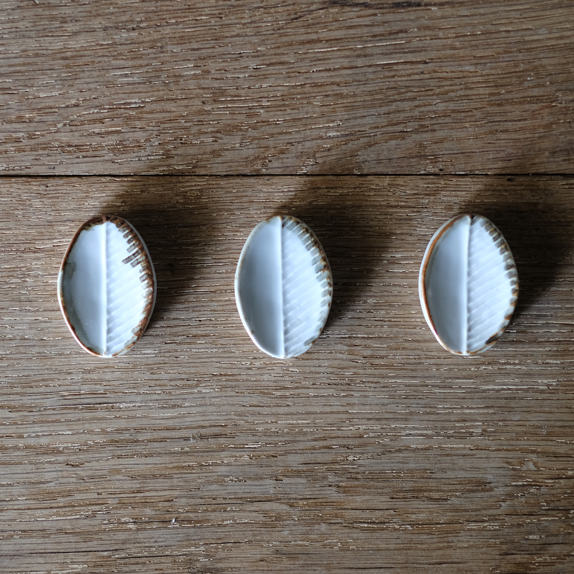 小さな箸置きですが、お皿やカップと同様に、彫った線に呉須をすり込んで表現された象嵌という技法を用いた模様は、手間を惜しまぬ仕事の積み重ねから生まれたもの。