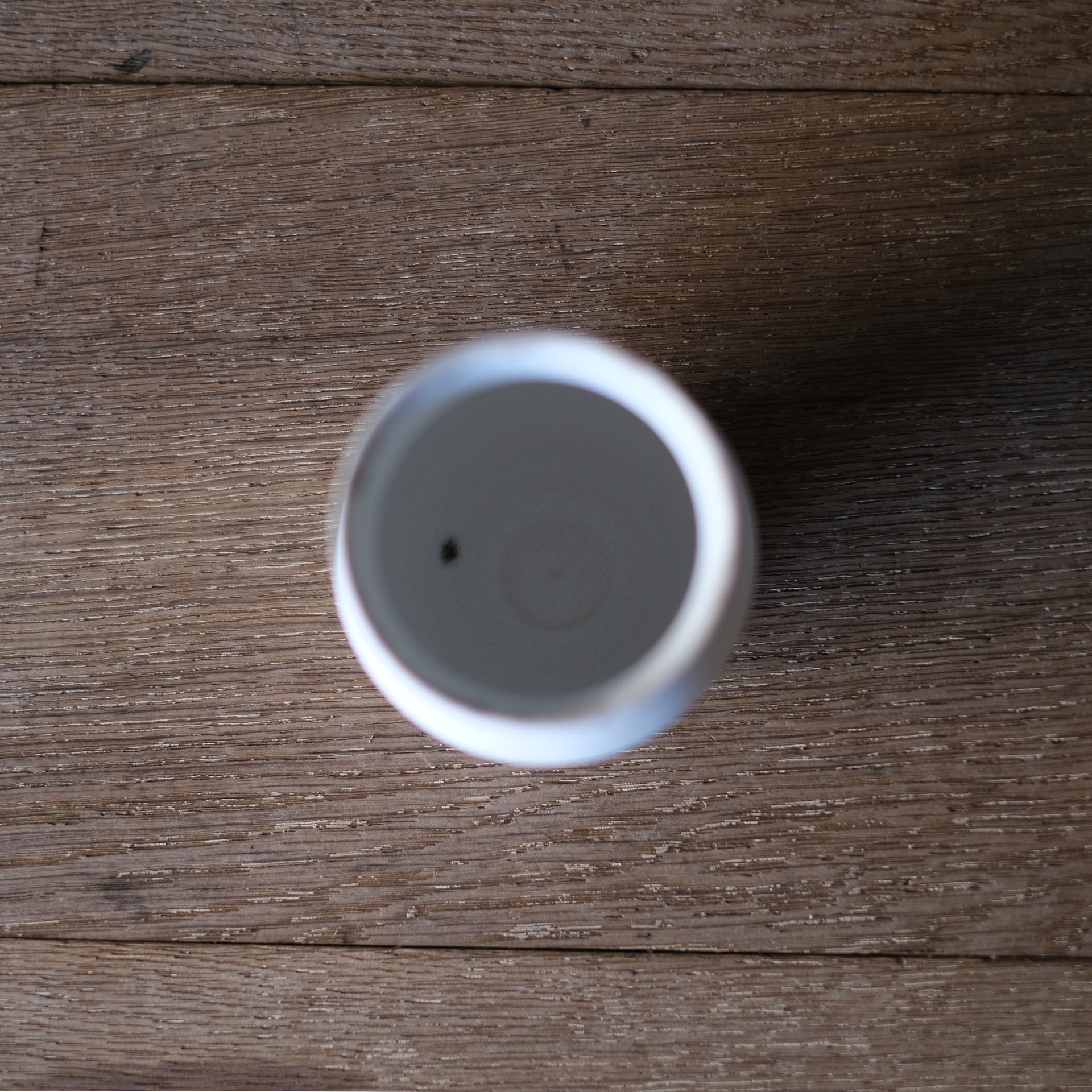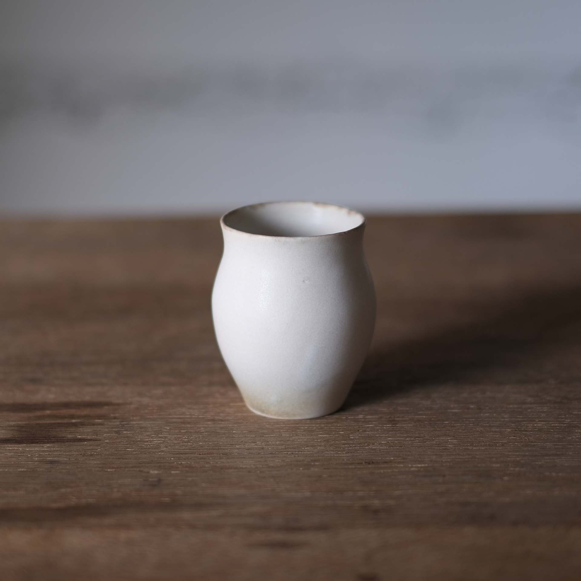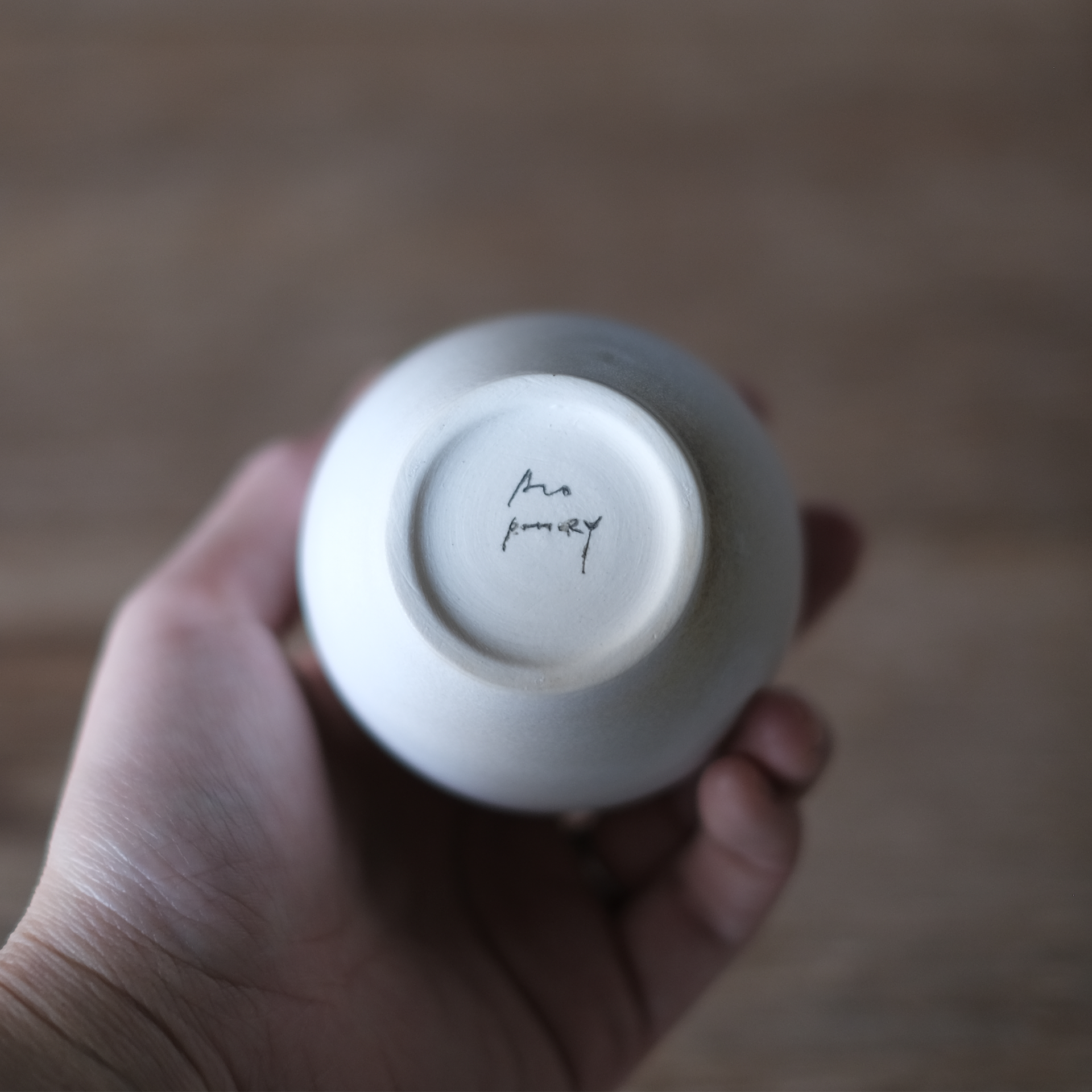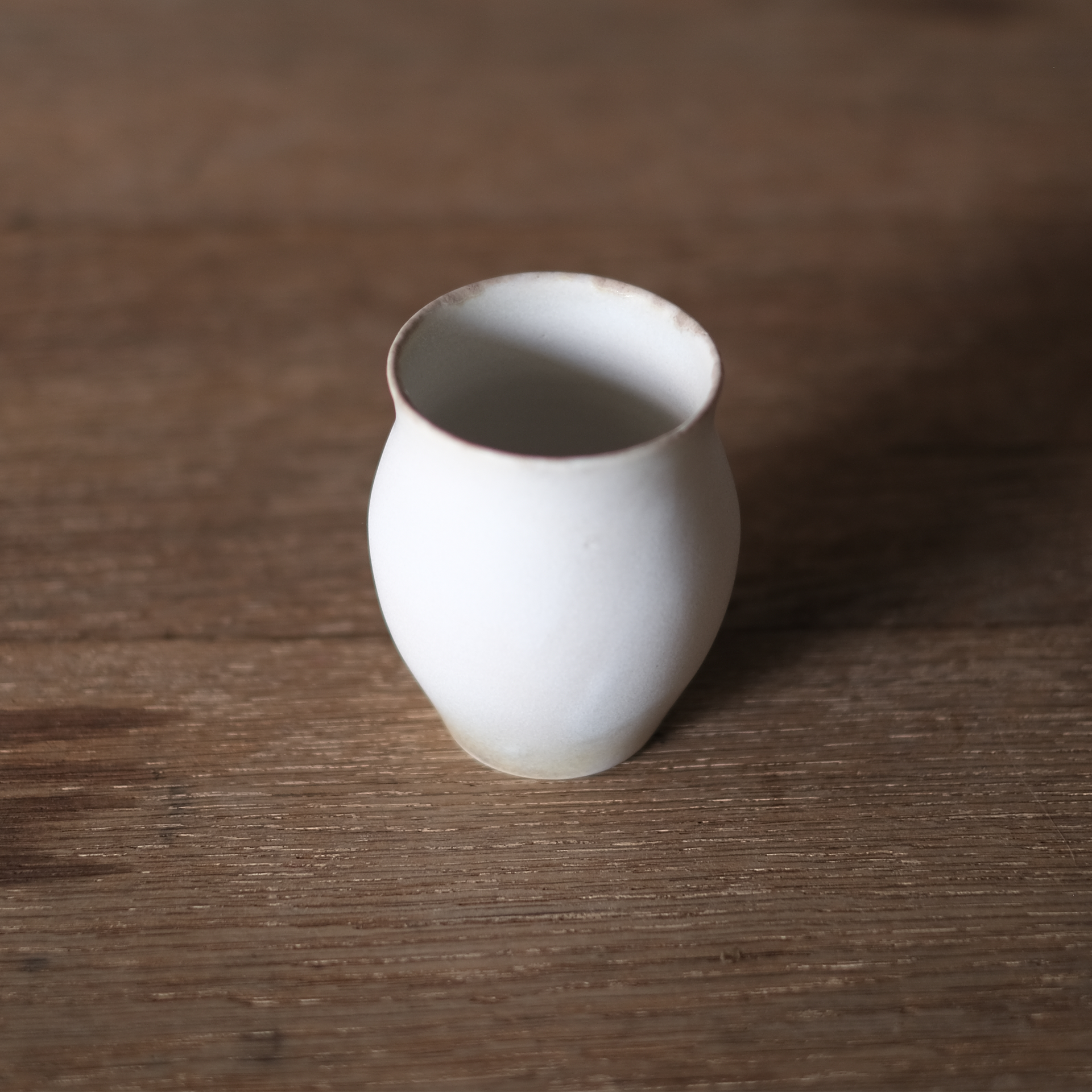 優しいブラウンの釉薬が口元に施され、雪のように綺麗な白いボディと調和。シンプルながらも凛とした佇まいが魅力です。