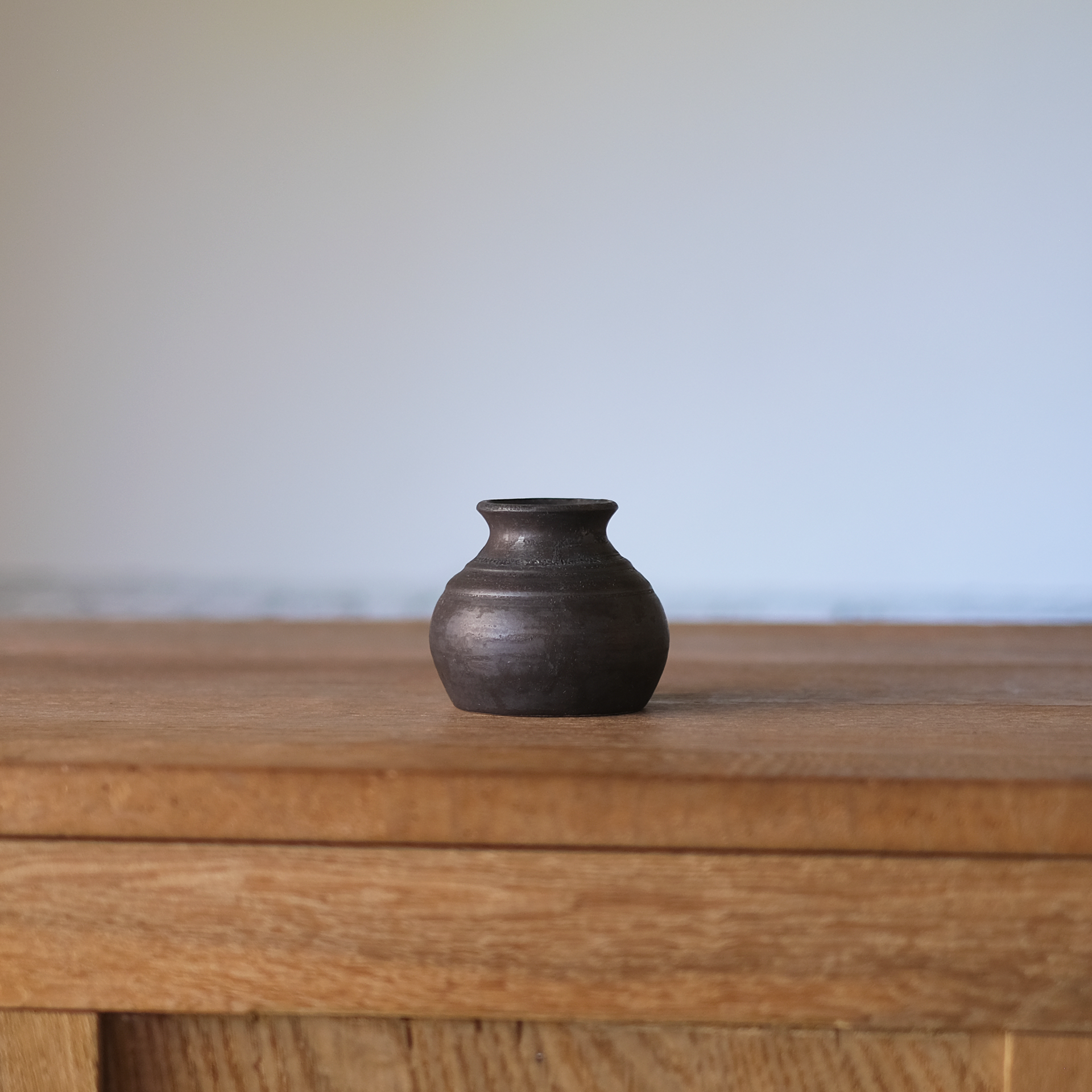 ふっくらと丸みを帯びた胴と、ゆるやかに締まった口の一輪挿し。