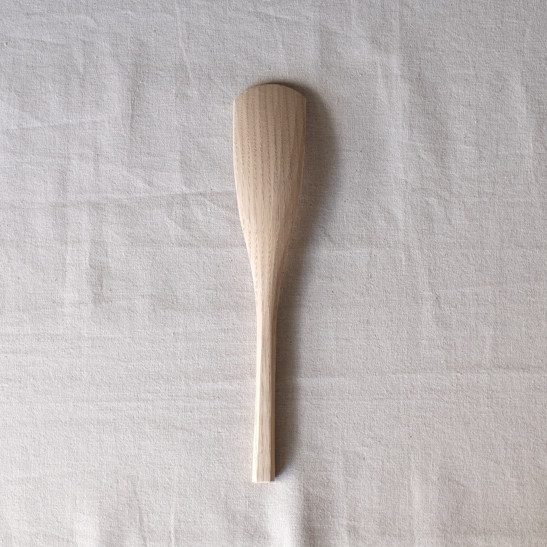 フライパンにひしめき合うピーマンの肉詰めや小さめのハンバーグなど、ピンポイントでスッと匙が食材の下に入りこんでくれますし、ポテトサラダなど食材を潰して混ぜるとき、あえものを混ぜるときも重宝します。