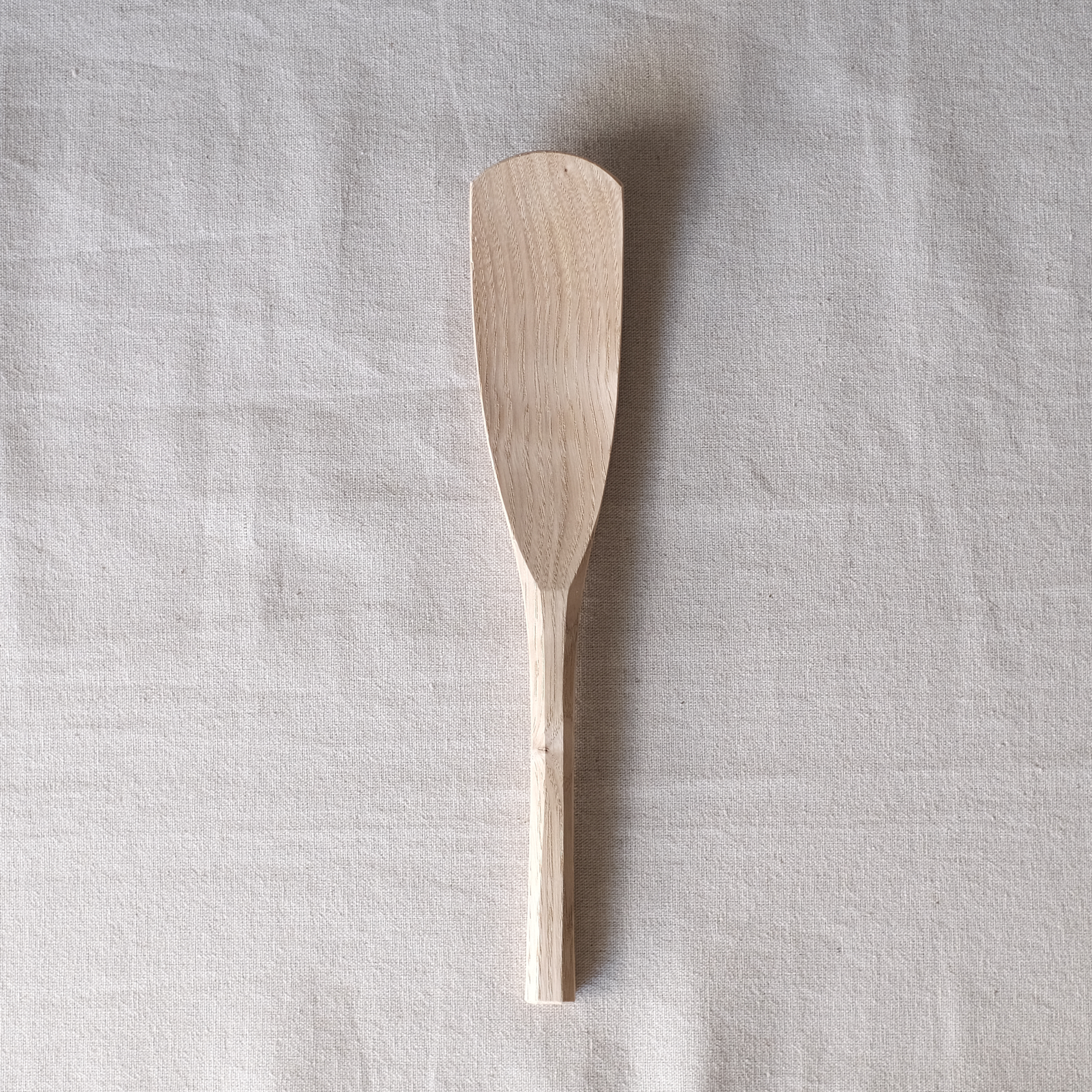 フライパンにひしめき合うピーマンの肉詰めや小さめのハンバーグなど、ピンポイントでスッと匙が食材の下に入りこんでくれますし、ポテトサラダなど食材を潰して混ぜるとき、あえものを混ぜるときも重宝します。