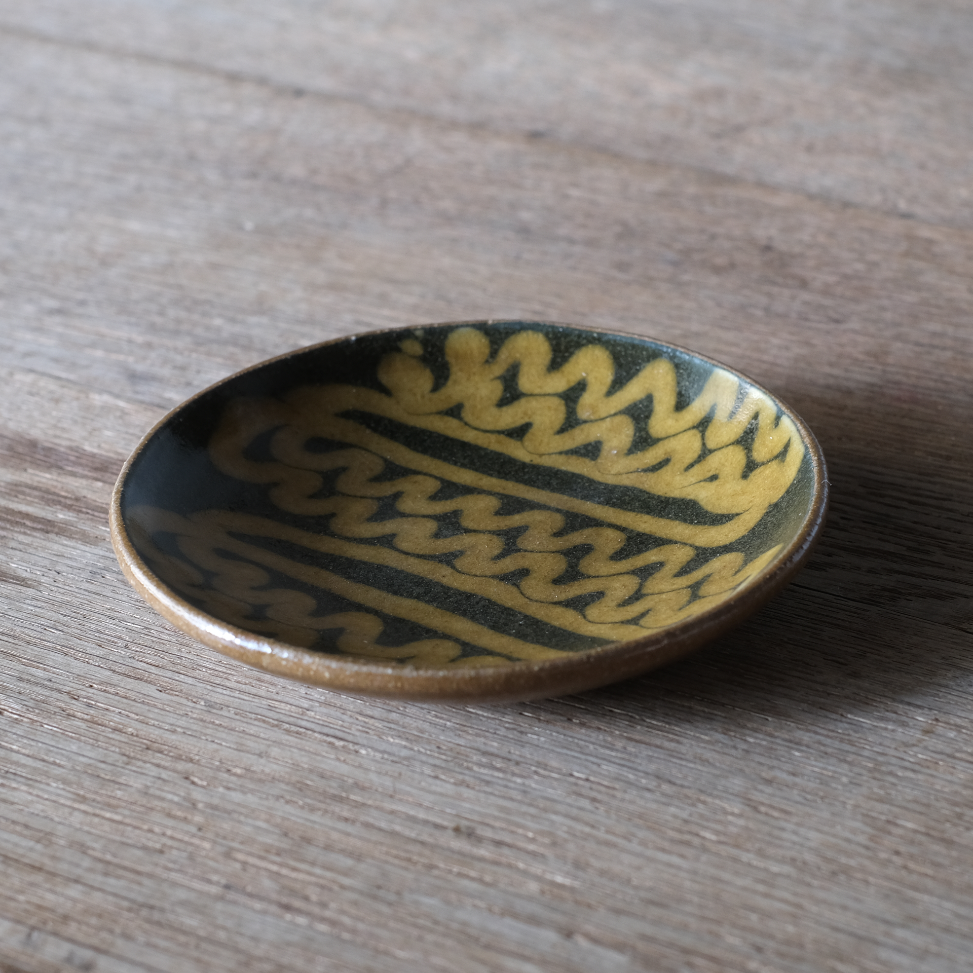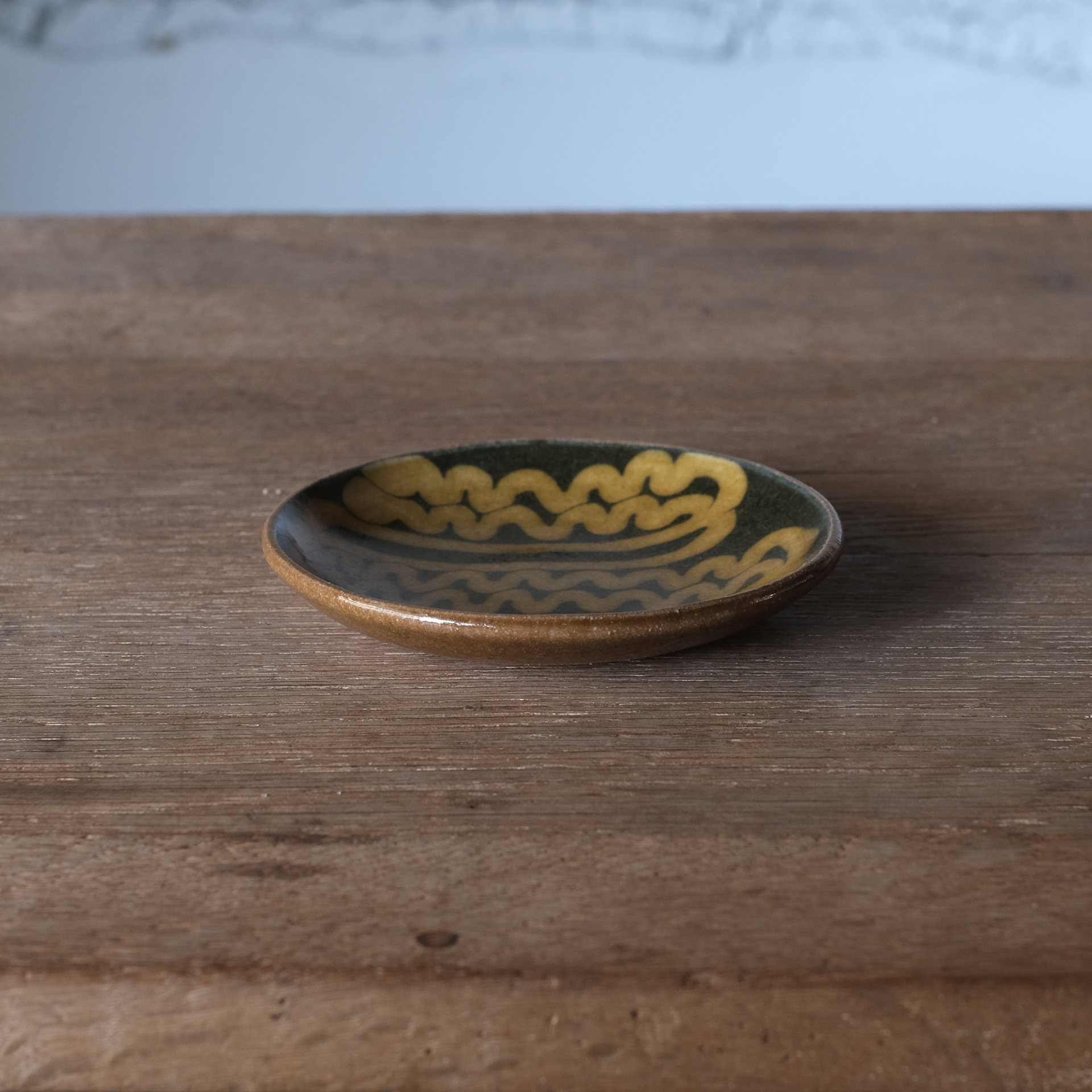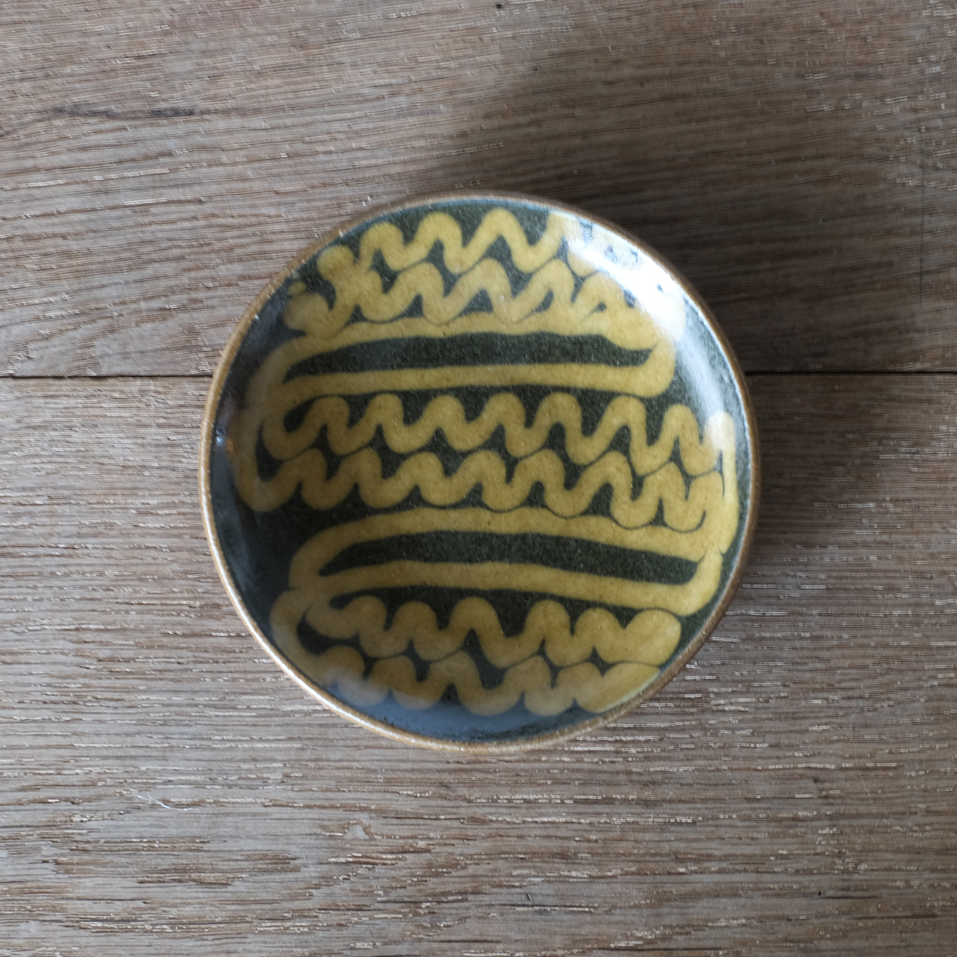 スリップウェアという、模様を描いてから成形するという技法でつくられたお皿です。