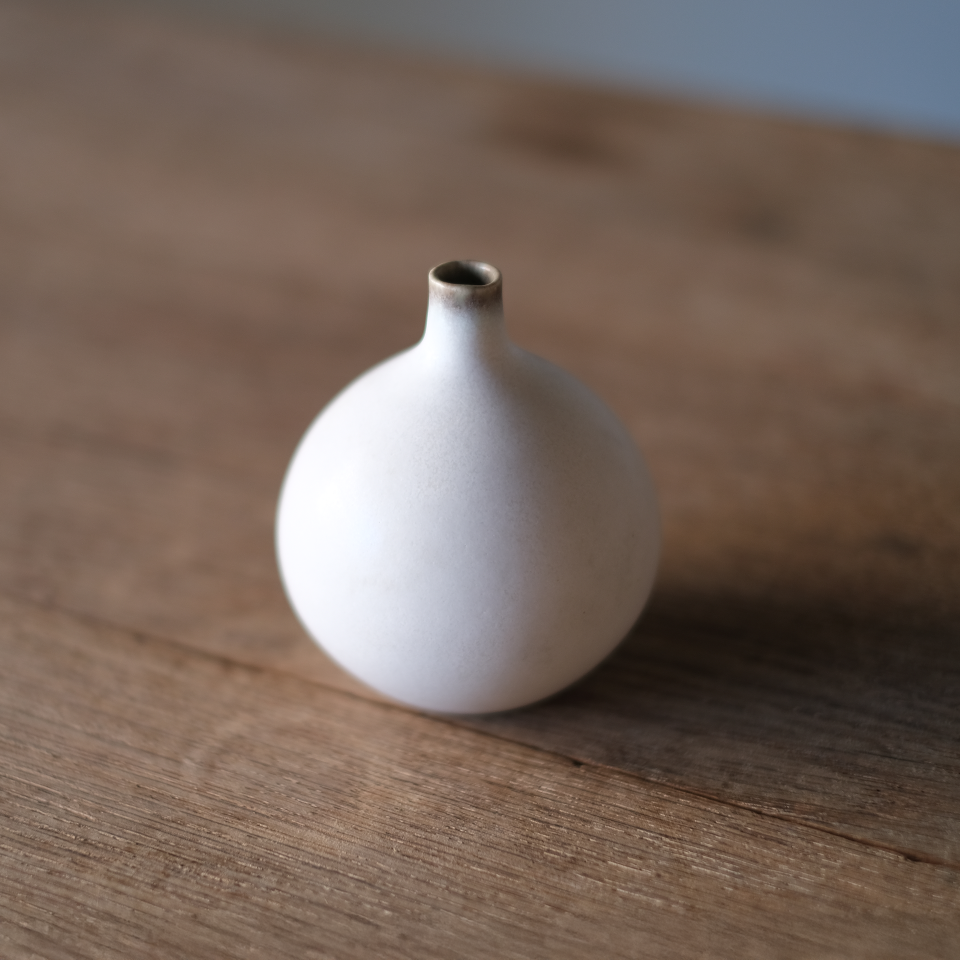 質感はなめらかで、口の部分に施された優しいブラウンの釉薬が特徴です。
