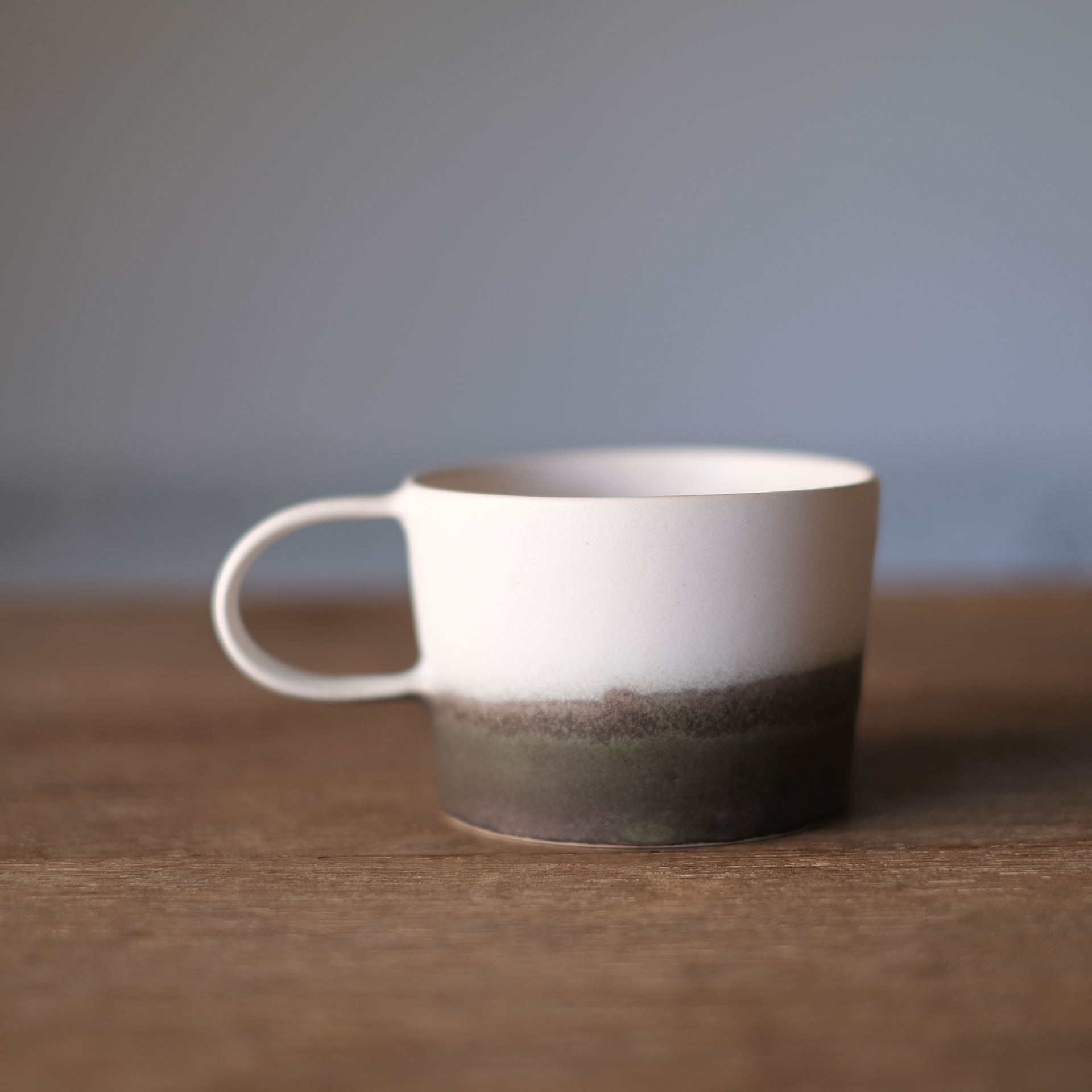 洗練された美しさのなかに手仕事の温かみが感じられる、ACOPOTTERYさんのマグカップ。